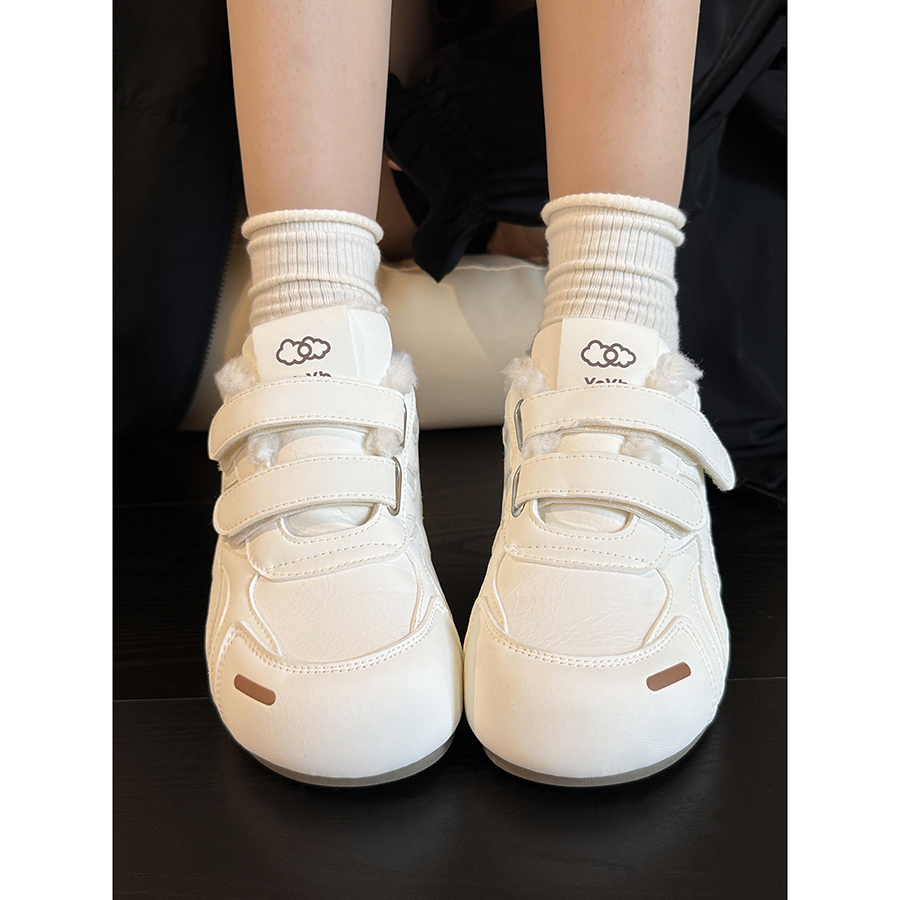 魔术贴加绒女鞋小白鞋2025冬季爆款学生百搭二棉鞋软底休闲德训鞋