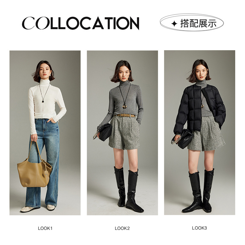 时尚莱赛尔针织衫女MOFAN摩凡2025冬新款米白百搭高领打底羊毛衫