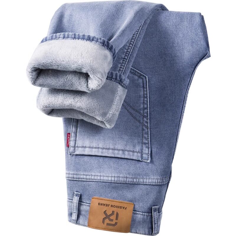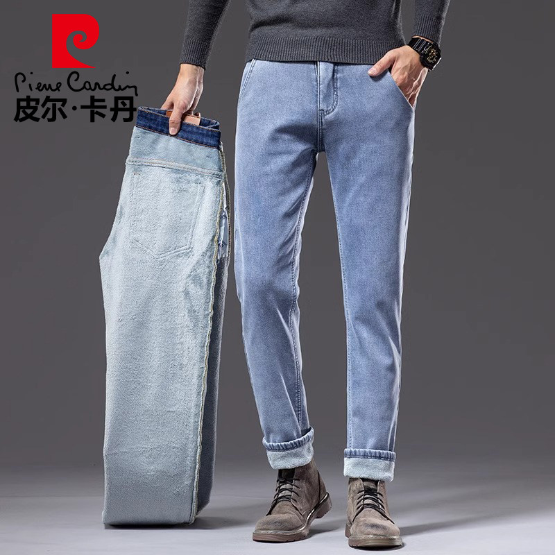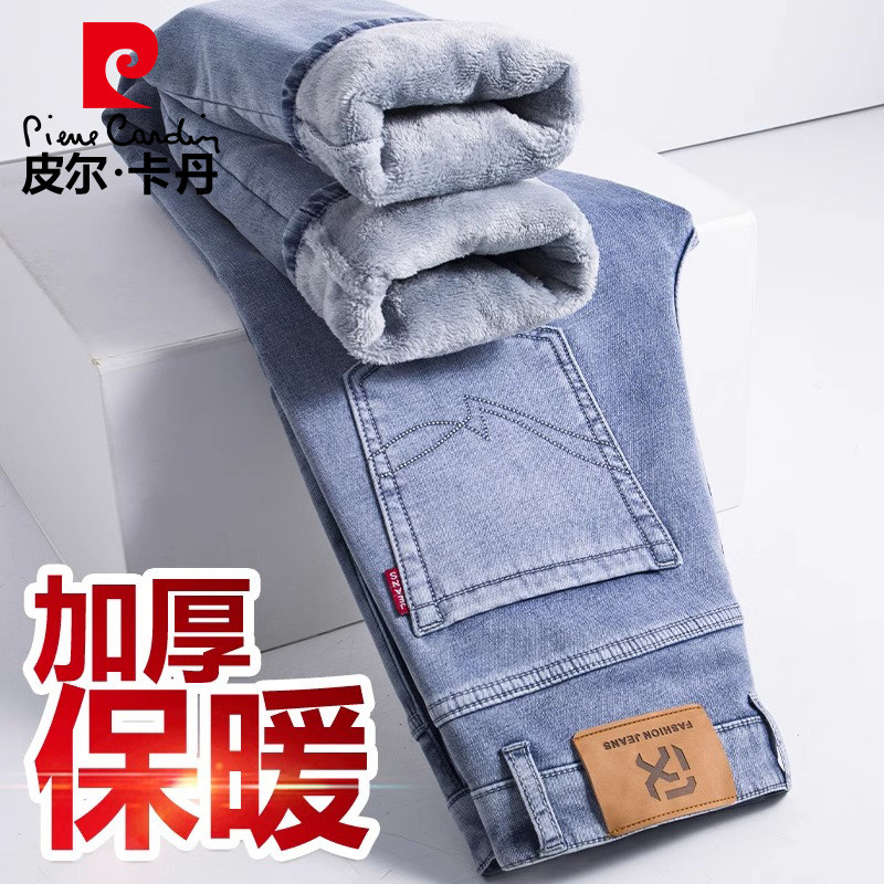 皮尔卡丹加绒加厚直筒牛仔裤