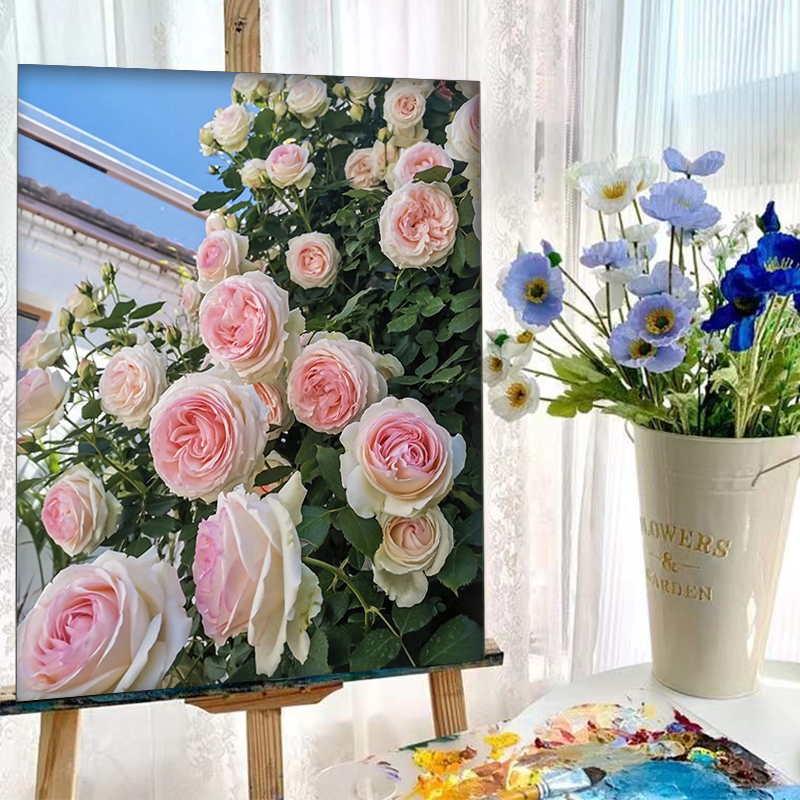 落霞玫瑰数字油画diy手绘丙烯画填充涂色风景手工装饰填色油彩画
