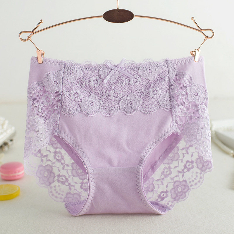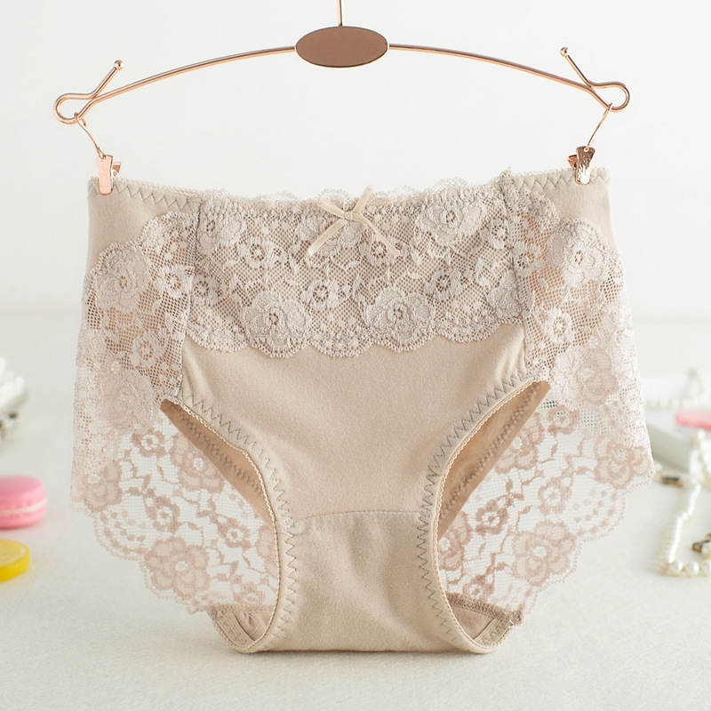 外贸内裤女原单日单出口日本腰纯棉内裤裆部蕾丝边舒适无痕三角裤