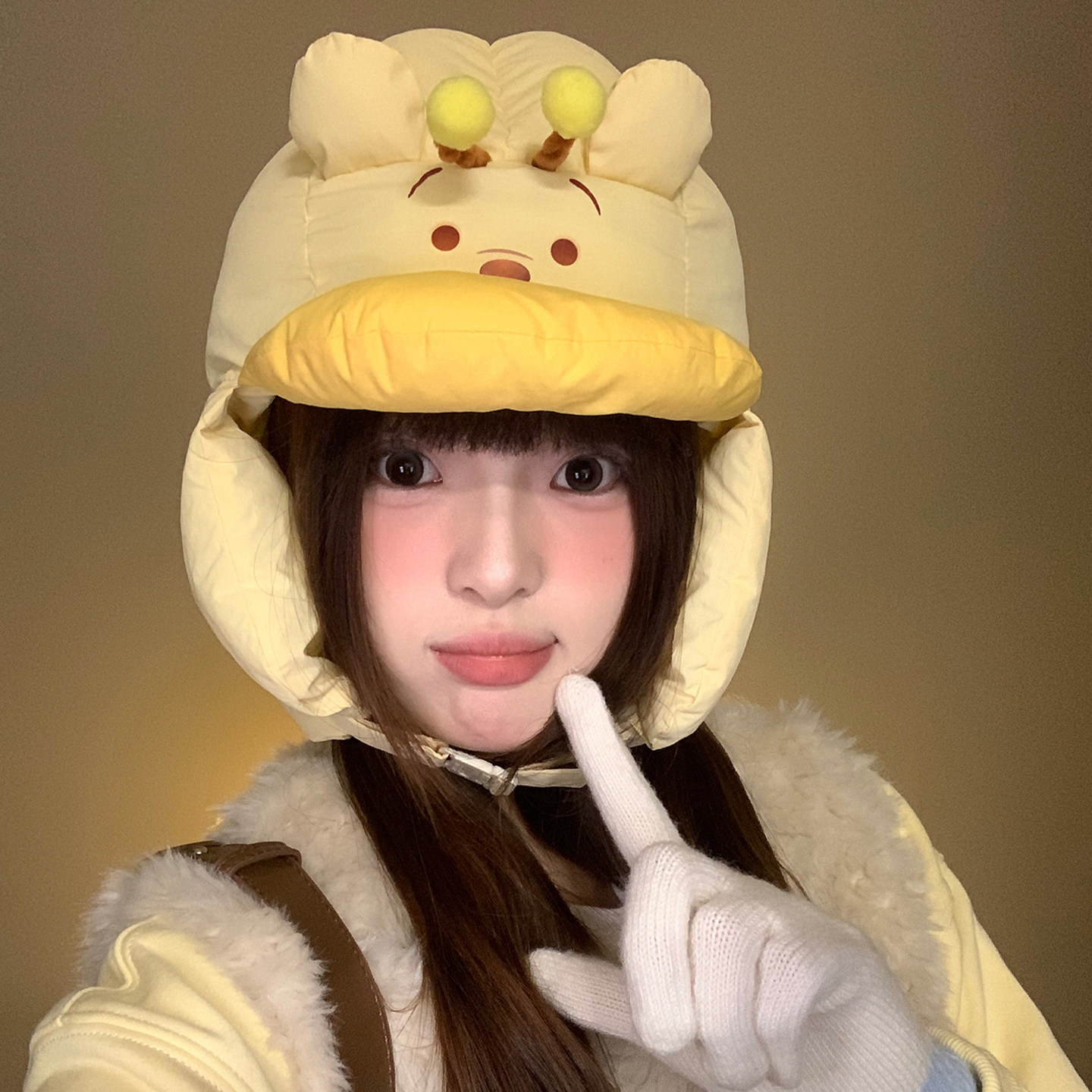 可爱迪士尼正版小熊蜜蜂包头雷锋帽女冬季保暖加厚护耳骑行飞机帽