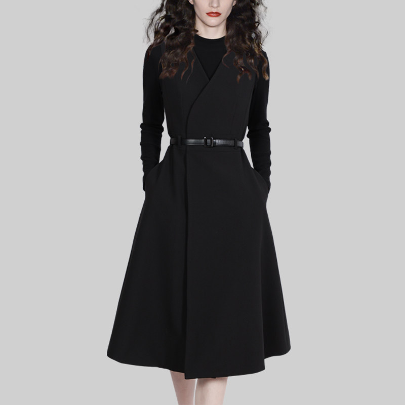 赫本风气质连衣裙时尚套装女2025年冬装新款小黑裙内搭T恤两件套