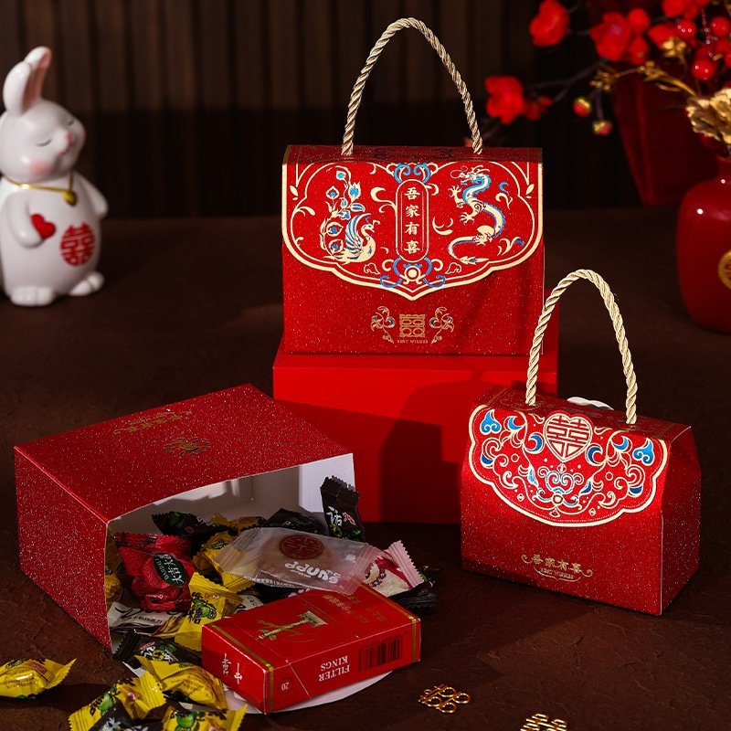 新款中式婚礼喜糖盒小众高级感结婚伴手礼盒喜糖袋婚庆礼盒喜糖盒