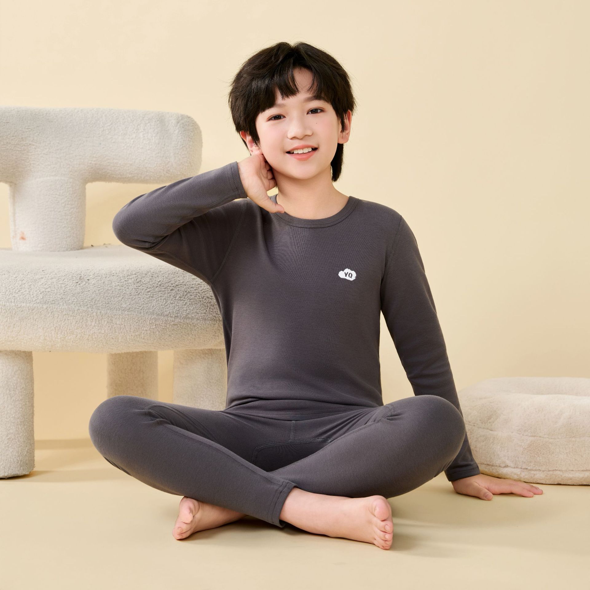 【纯色青少年】音乐桥秋冬儿童纯棉内衣套装少男少女秋衣秋裤加厚