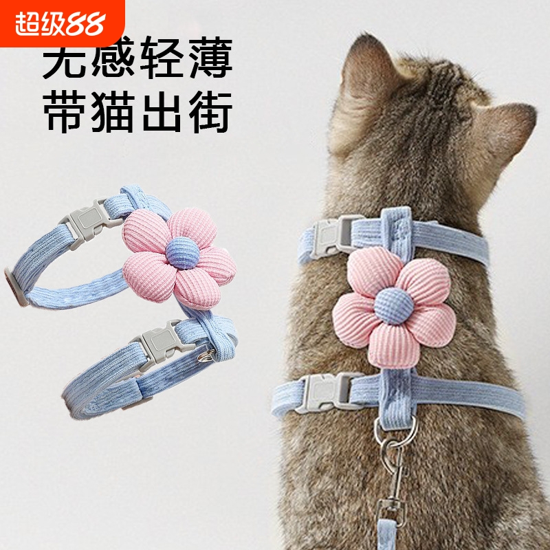 花朵猫咪牵引绳工字型宠物背带牵引绳小型犬狗狗绳遛猫绳