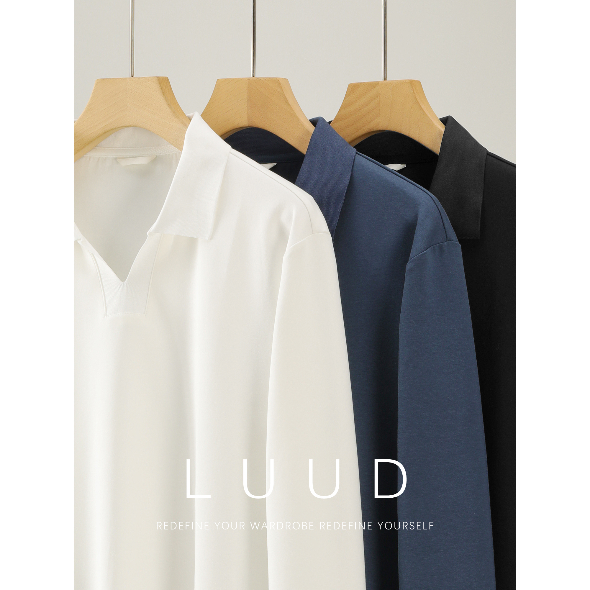 LUUD 简约通勤海鸥领POLO衫长袖男装亲肤柔软棉感V型翻领休闲卫衣