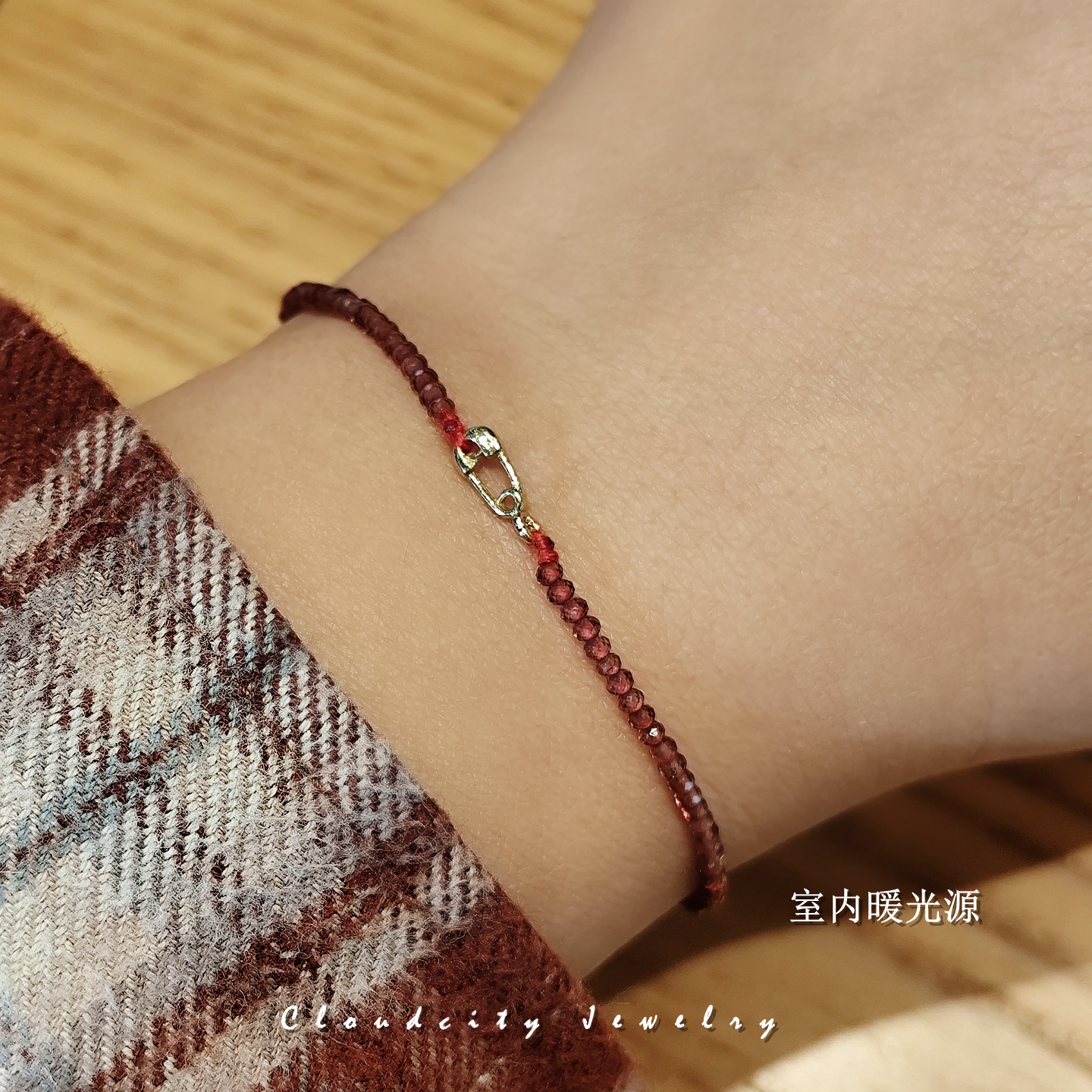 Cloudcity简约百搭精致超细石榴石红绳感925银镀金小别针手作手链