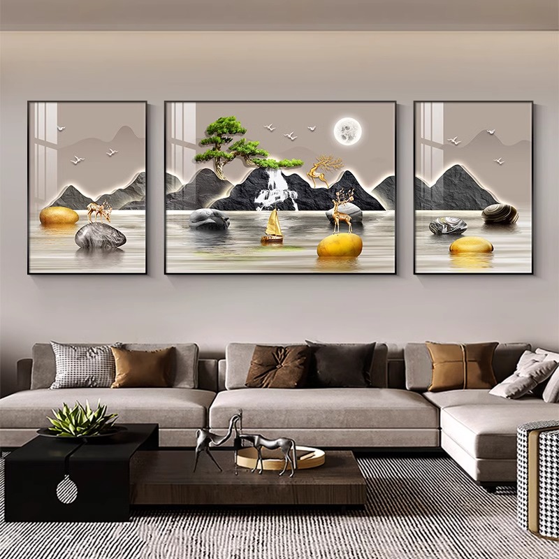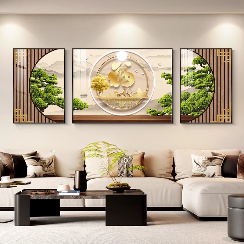 迎客松办公室装饰画新中式禅意茶室背景墙壁画客厅山水挂画高级感