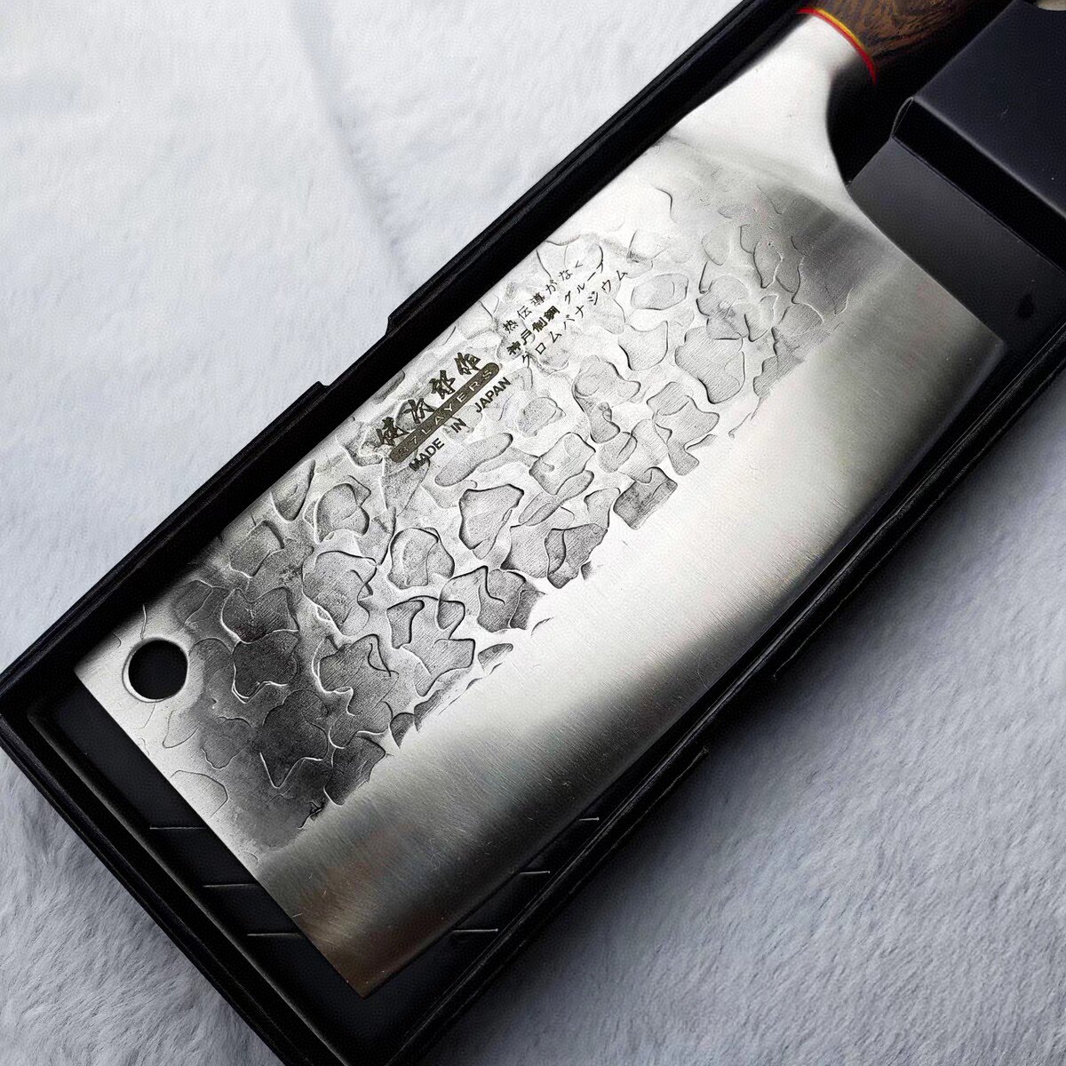 日本进口健次郎作菜刀锻打锤纹斩切两用刀高碳不锈钢切片斩骨刀