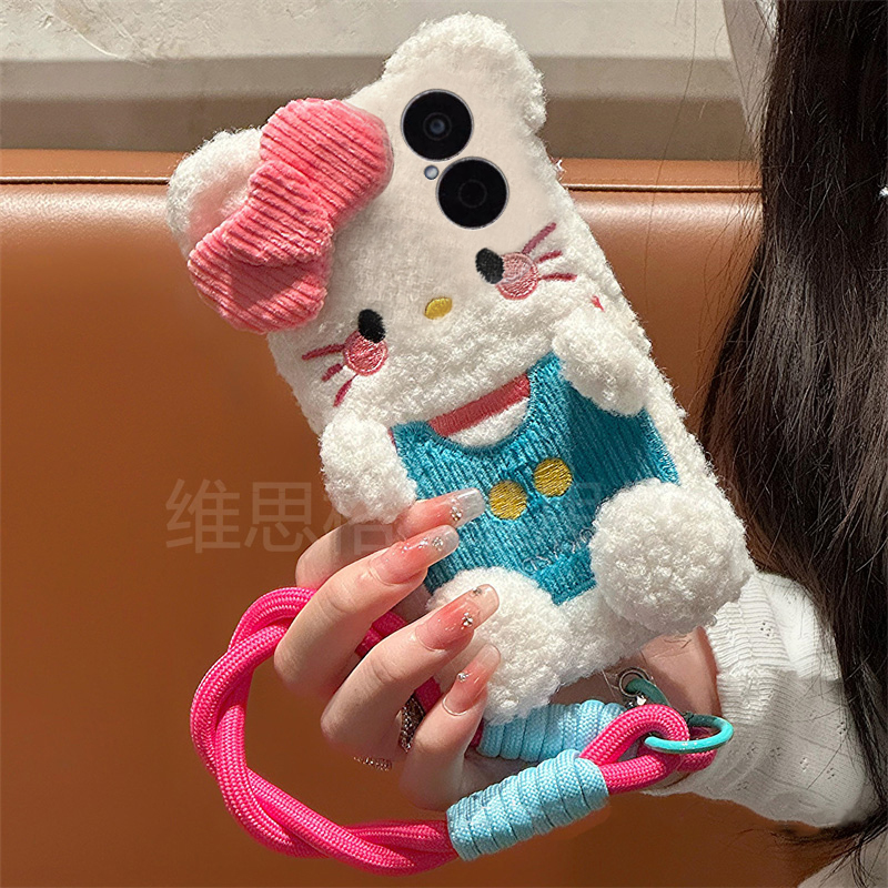 蝴蝶结凯蒂猫适用华为畅享70pro手机壳60x尼龙绳优畅享50plus可爱20se秋冬季0e畅想z毛绒9e毛茸茸5g麦芒9软8