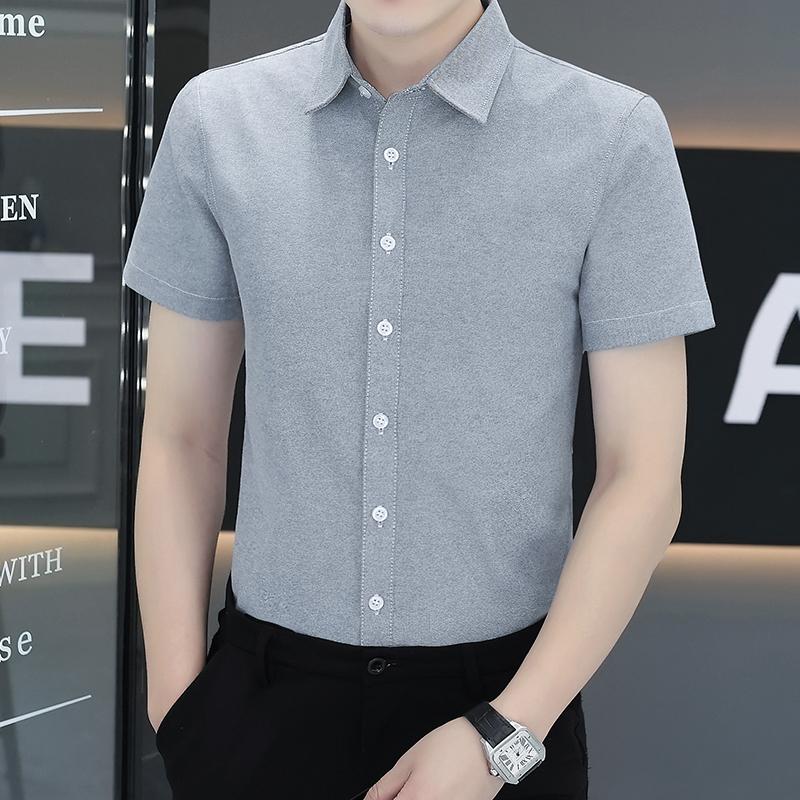 纯色衬衫男短袖夏季冰丝免烫抗皱薄款衬衣牛津纺商务休闲正装寸衣