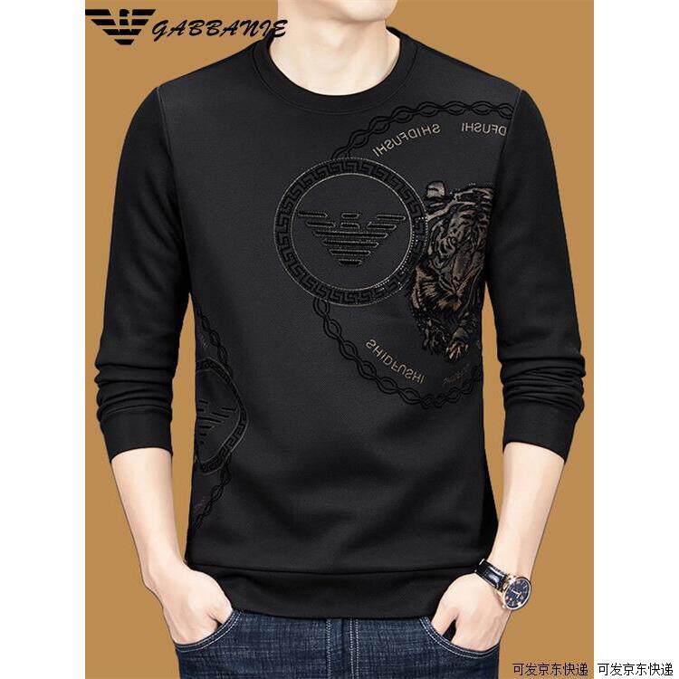正品意大利 男士纯棉长袖t恤圆领春秋新款中青年卫衣打底衫男装潮