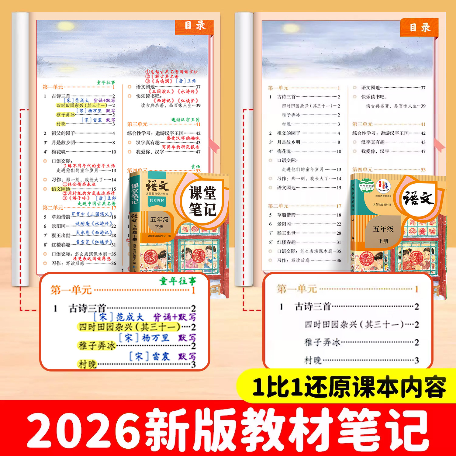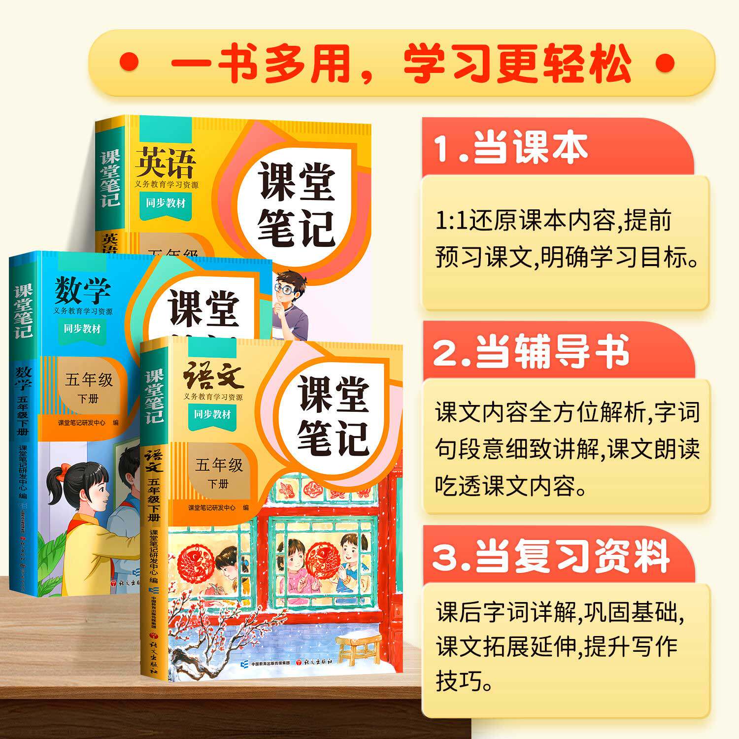 2026适用五年级上册下册课堂笔记语文数学英语同步课本人教版部编版教材全解黄岗随堂笔记学霸笔记小学五年级课内预习复习教辅资料