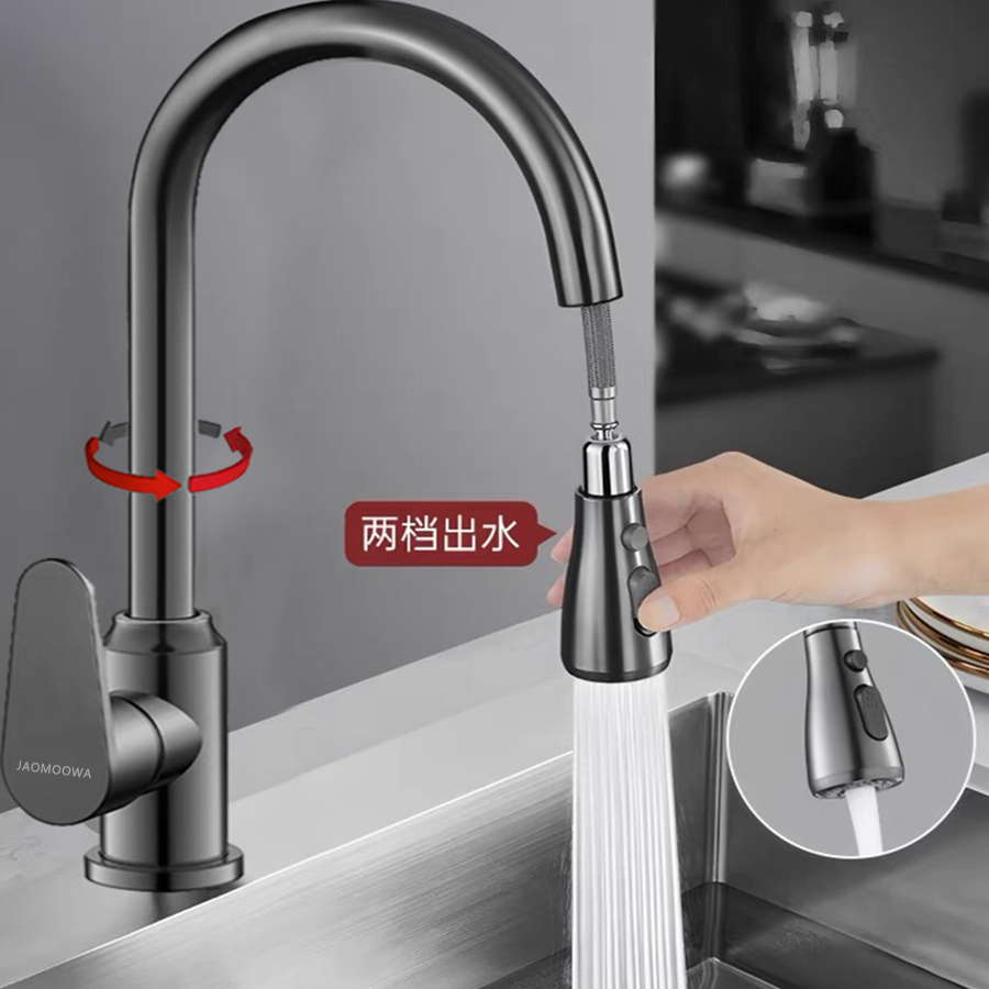 全铜枪灰色厨房洗菜盆抽拉式水龙头家用水槽洗碗池旋转冷热水龙头