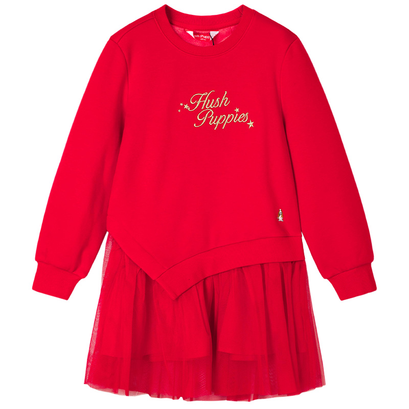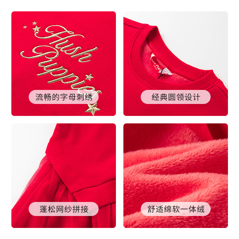 暇步士童装女童新年连衣裙秋冬新款大童加绒拜年裙子儿童公主裙