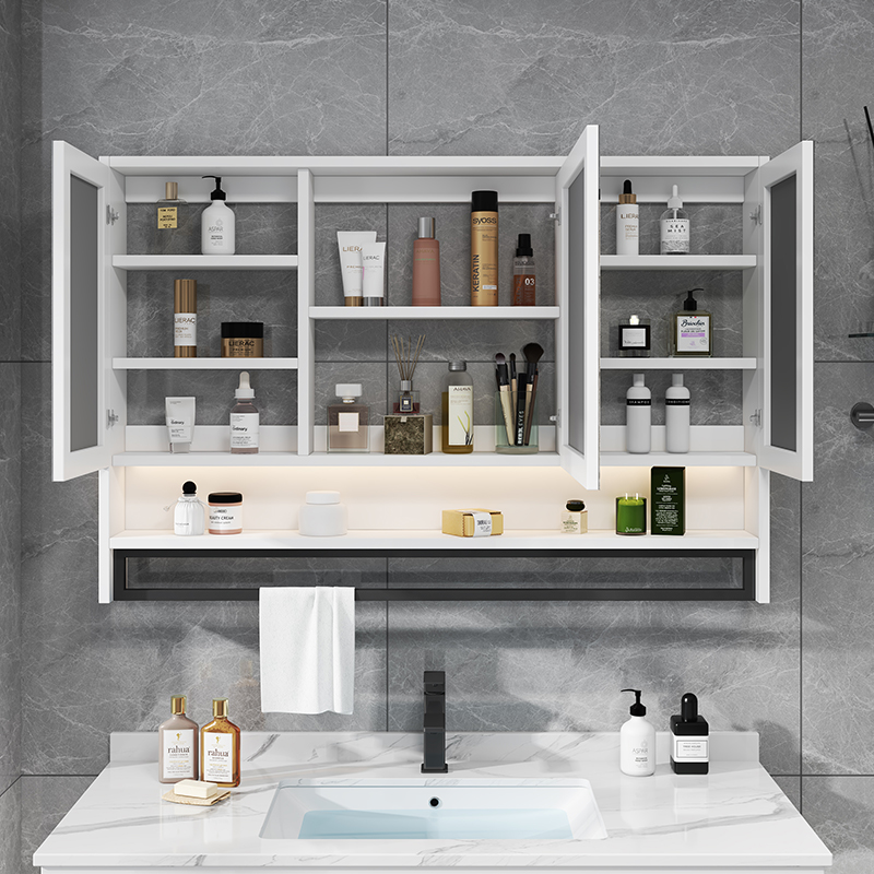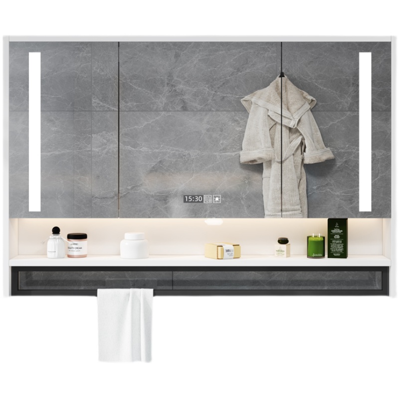 实木智能浴室镜柜带灯除雾卫生间浴室镜挂墙式洗手间镜子带置物架