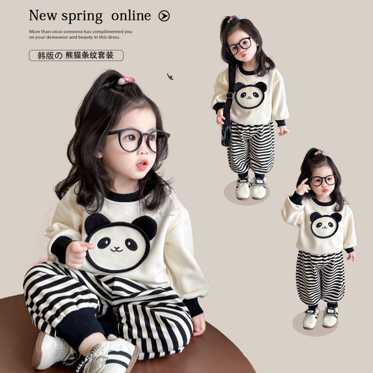 女童套装2025新款儿童洋气时髦卫衣女宝宝卡通春秋运动休闲两件套