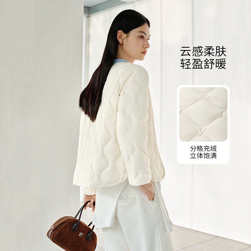 【胡可推荐】艾莱依早春轻薄羽绒服女短款时尚显瘦波浪纹外套