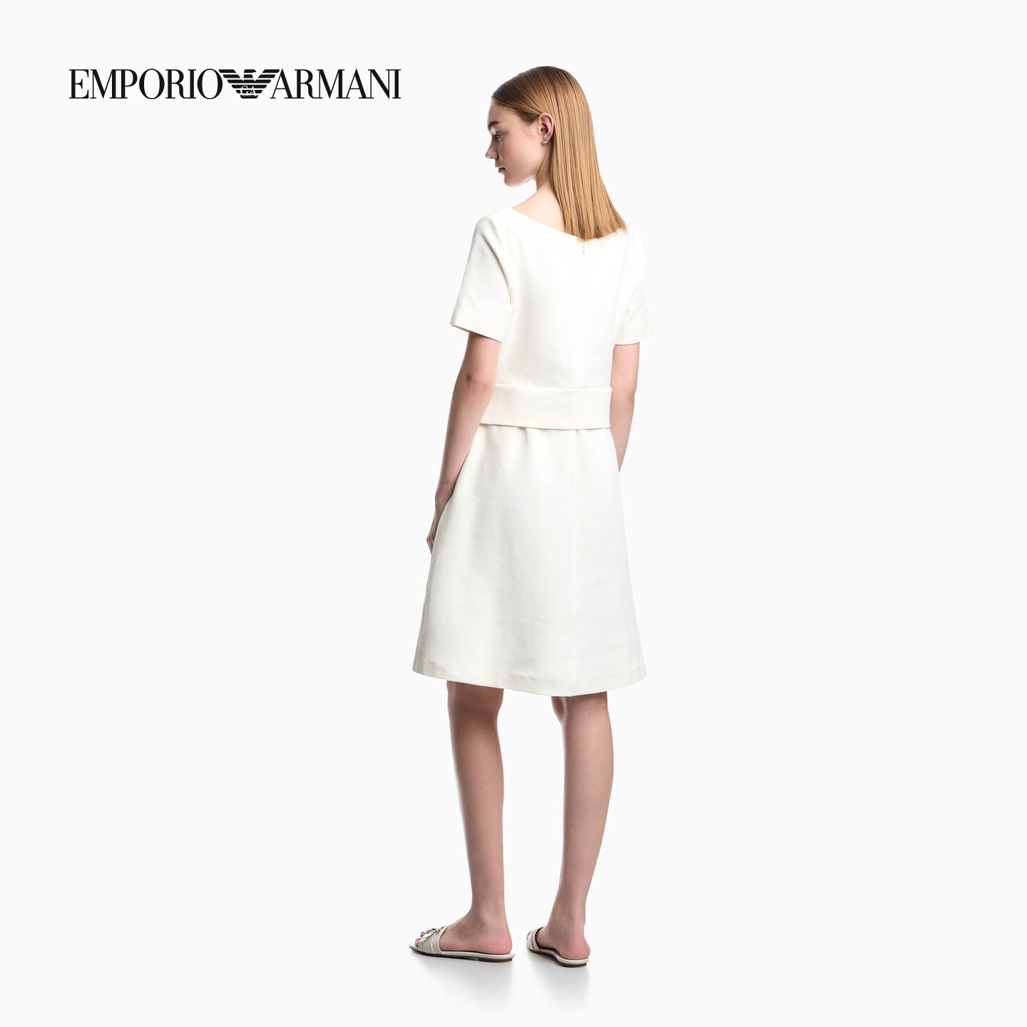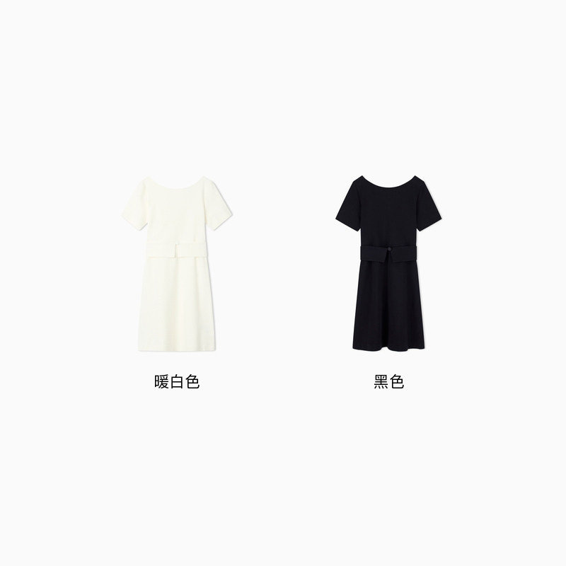 EMPORIO ARMANI/阿玛尼26年春夏新款女士短袖喇叭纯色优雅连衣裙