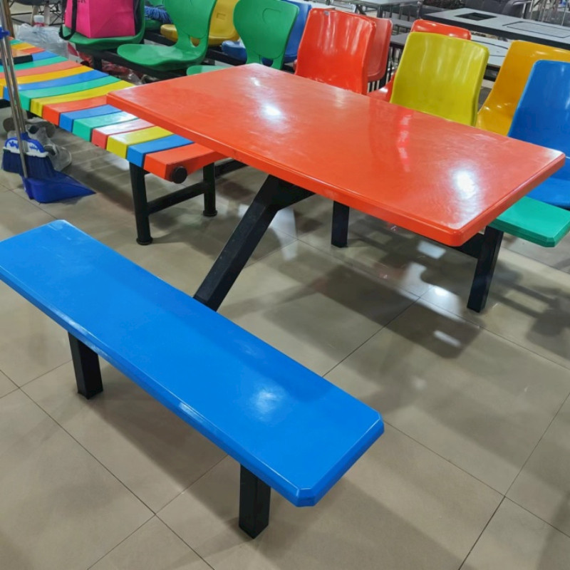职工学校学生食堂餐桌椅组合员工4人玻璃钢工地饭堂快餐桌椅连体
