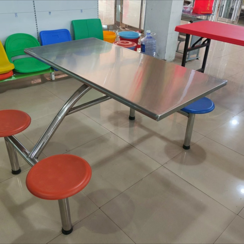 连体4人职工学校不锈钢快餐桌椅