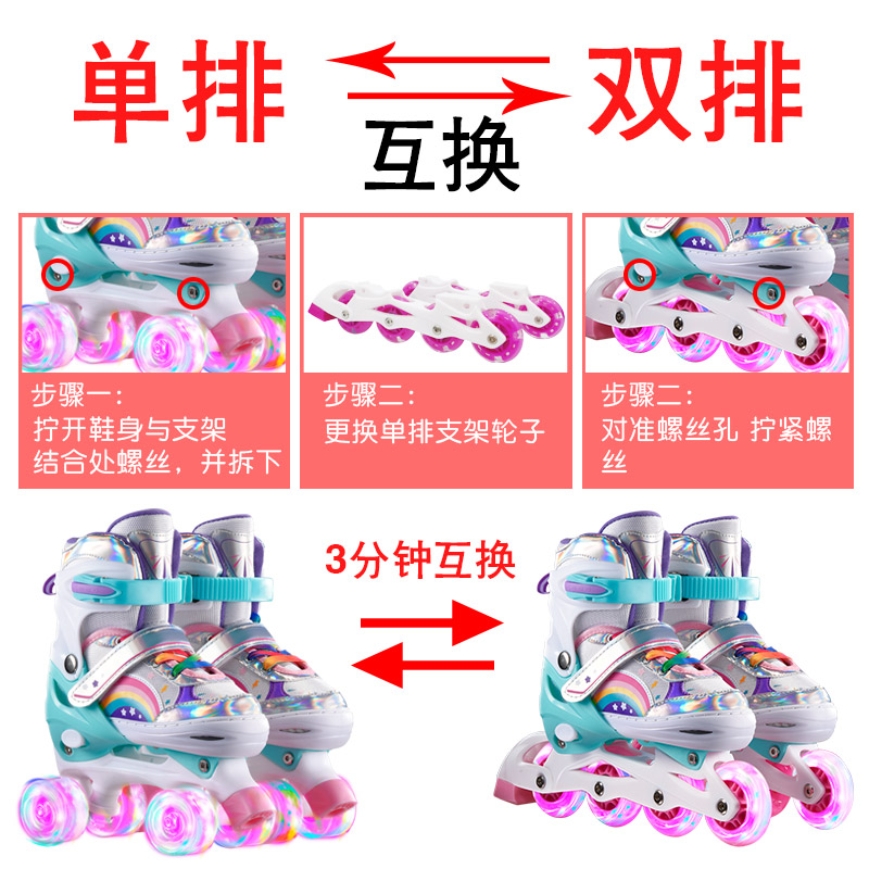 二合一四轮溜冰鞋儿童初学者套装双排轮滑鞋男女童小童宝宝滑冰鞋