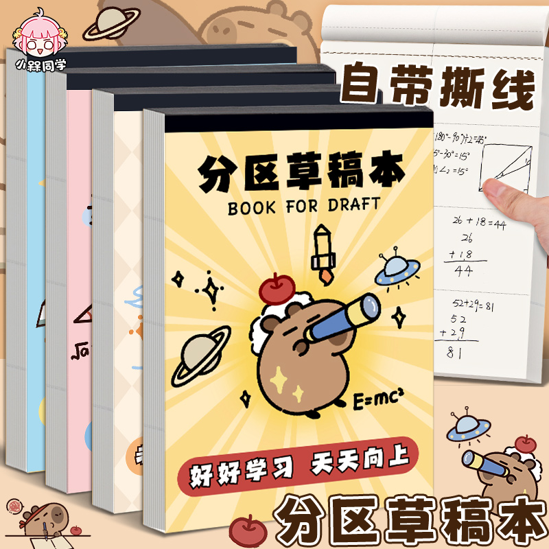 8格分区草稿本!草稿纸空白可撕演算本加厚分格本数学演算本子小学生用空白演草纸三年级专用计算本一年级