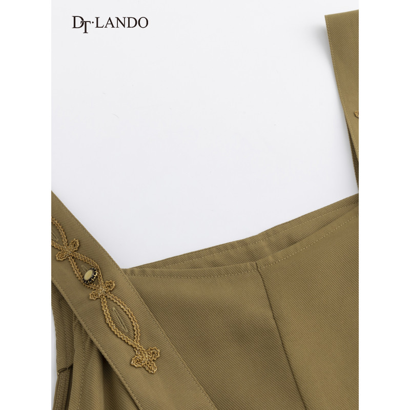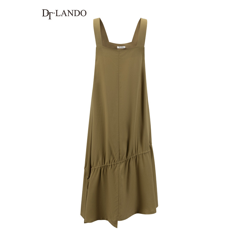 DTLANDO夏季女装复古无袖背带裙宽松抽绳A字可叠穿中长款连衣裙