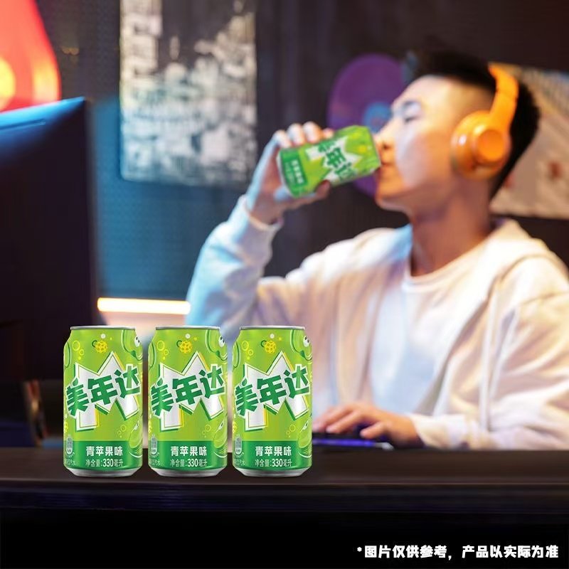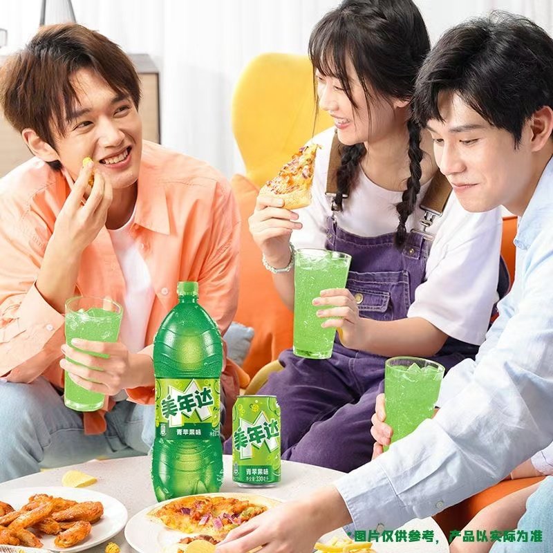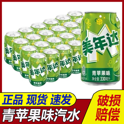 Pepsi百事可乐 美年达青苹果味汽水饮料330ml*12罐矮罐整箱24罐装