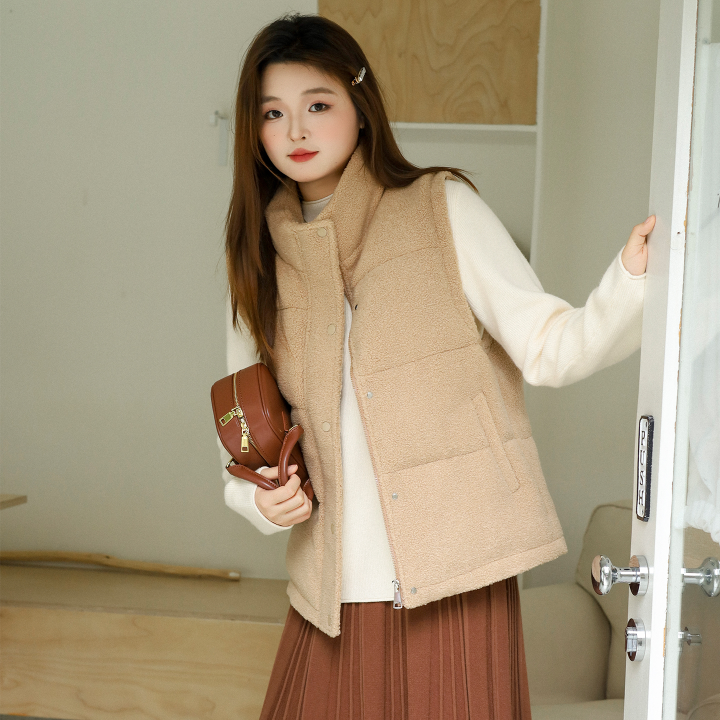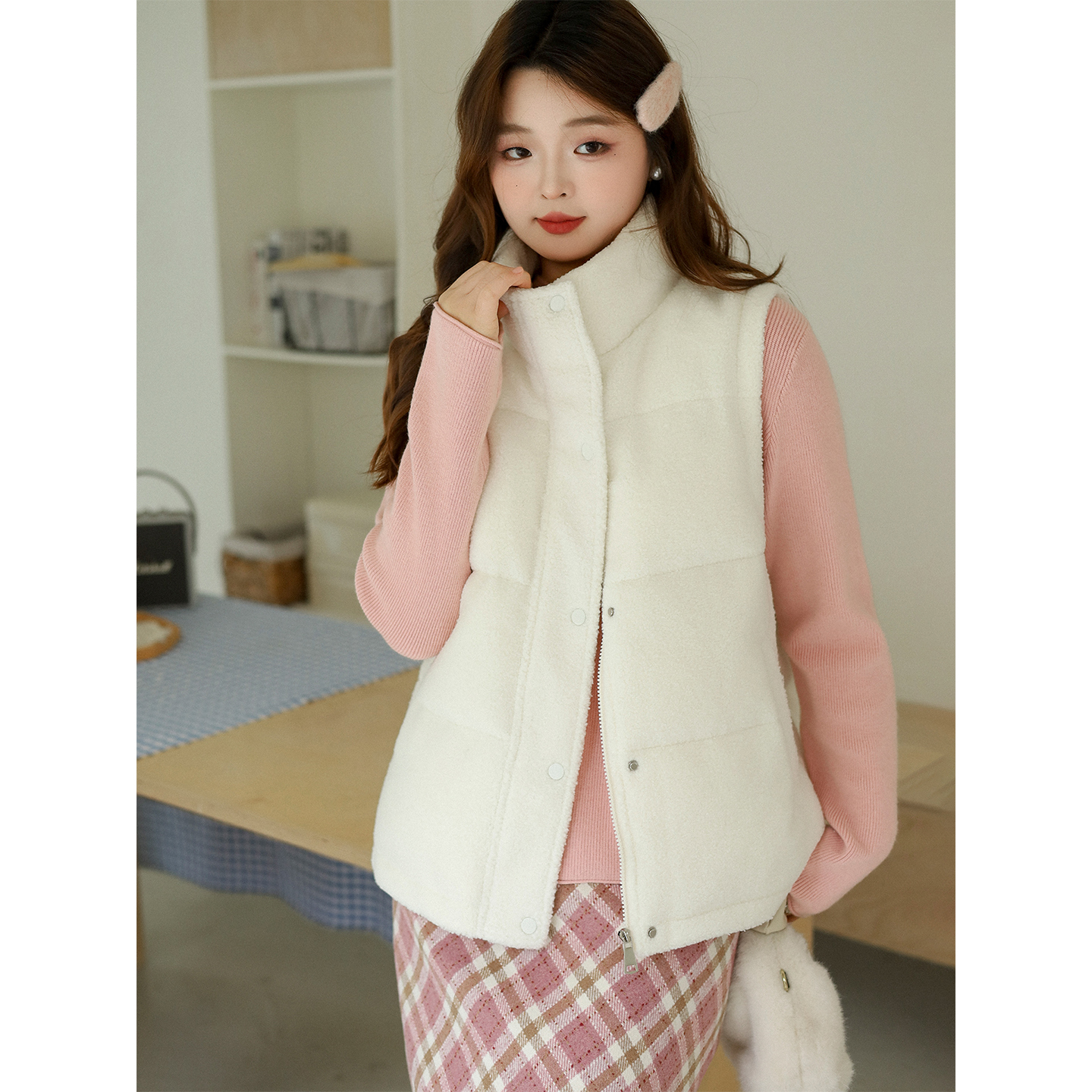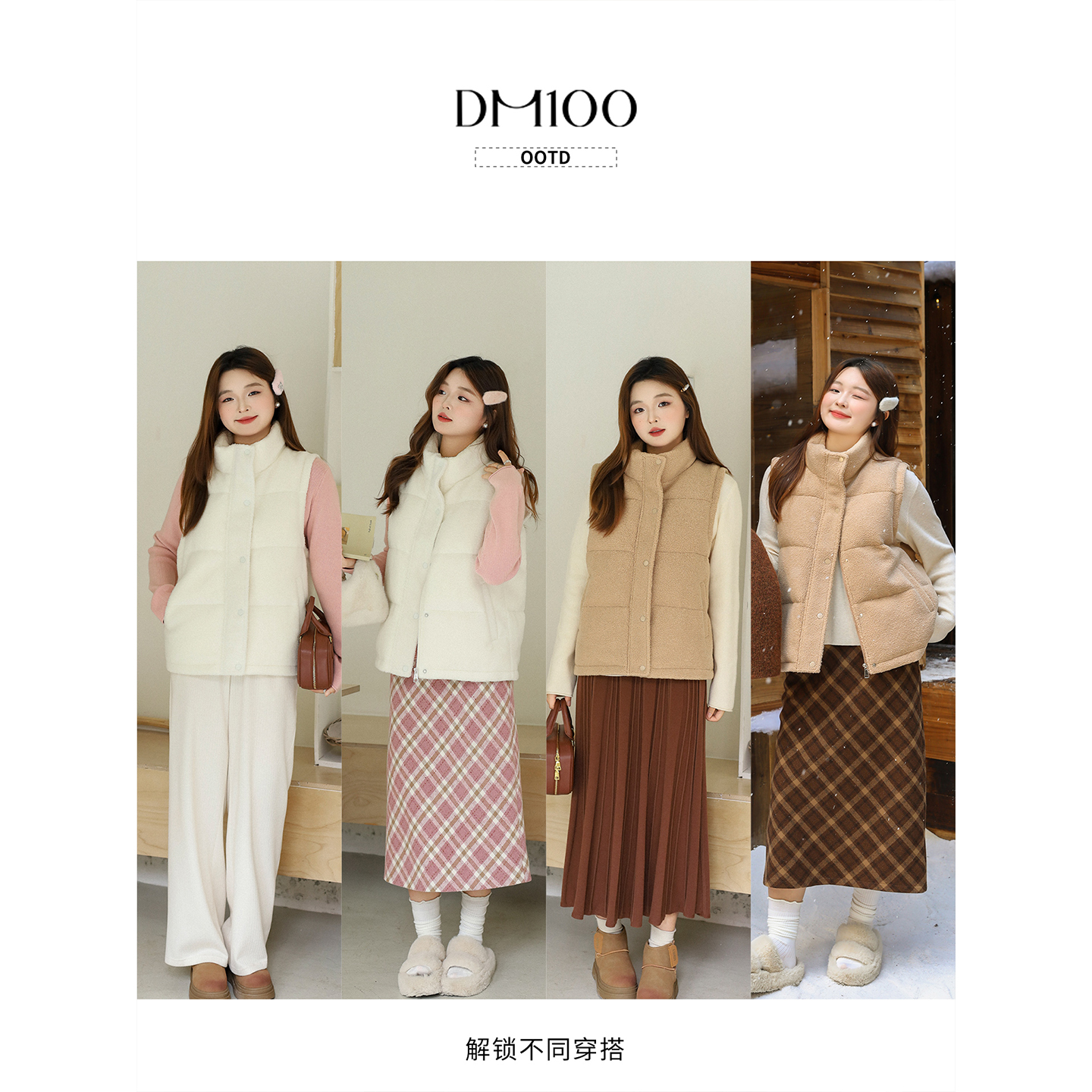 DM100大码百分百女装微胖mm冬季百搭保暖羊羔毛立领直筒棉服马甲