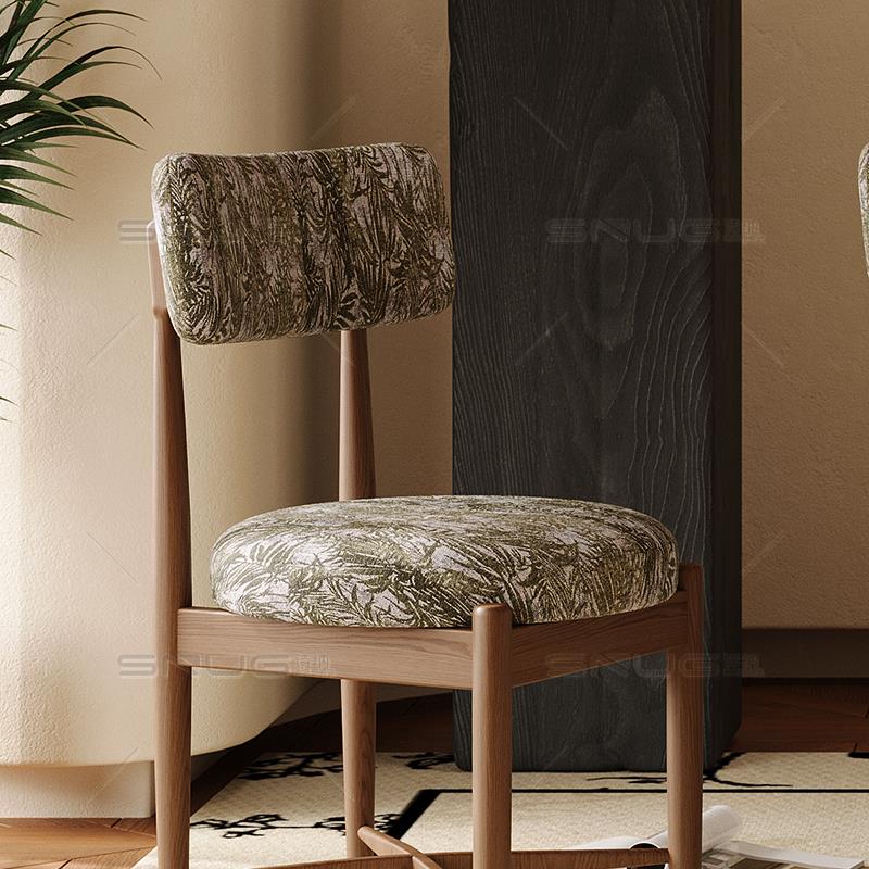 诗纳实木高端布料餐椅家用设计师北欧简约餐桌椅中古风软包靠背椅