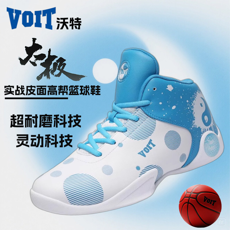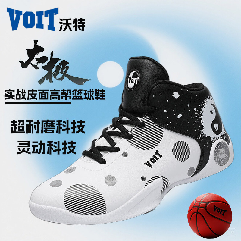 Voit沃特篮球鞋男专业实战无极太极耐磨高帮皮面运动鞋水泥地克星