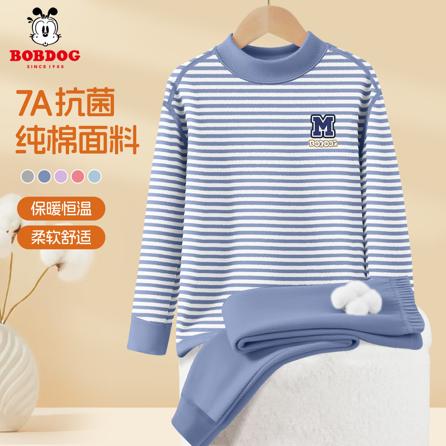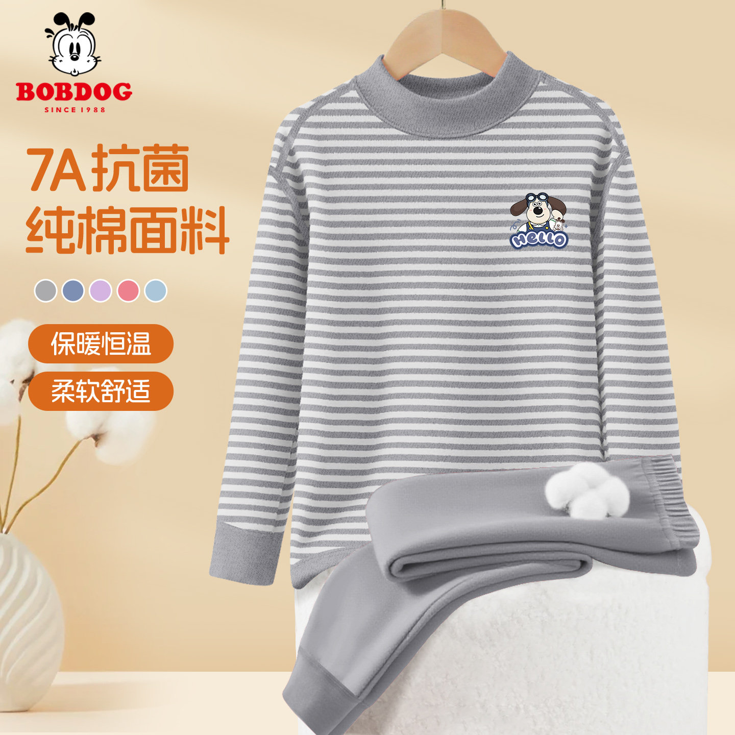巴布豆童装男童纯棉家居服套装2026新款儿童绿色秋衣秋裤男孩春装