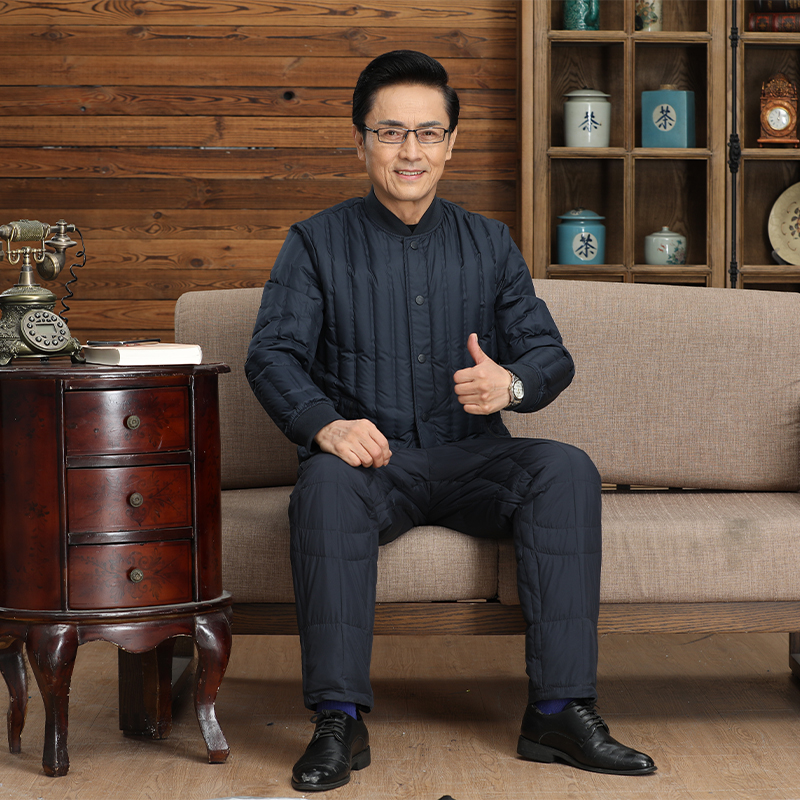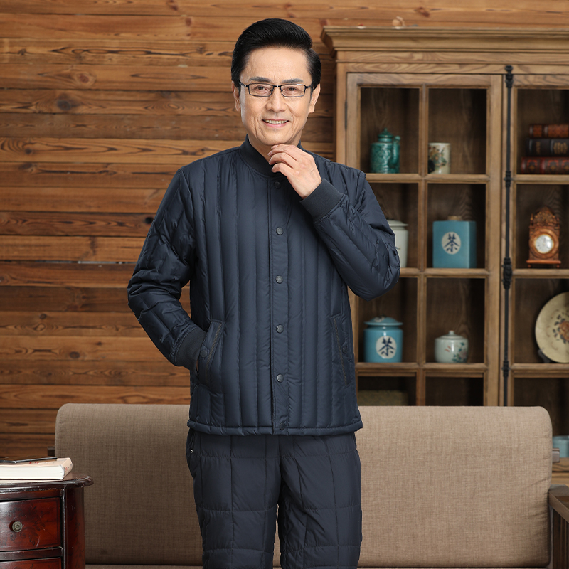 恒源祥集团彩羊羽绒服内胆男士中老年冬季加绒爸爸装两穿保暖套装
