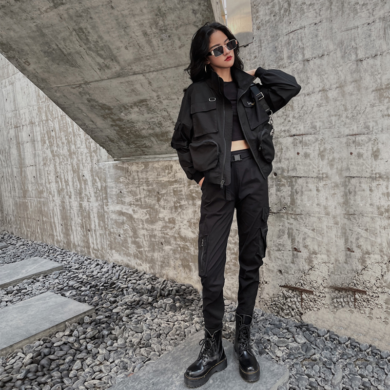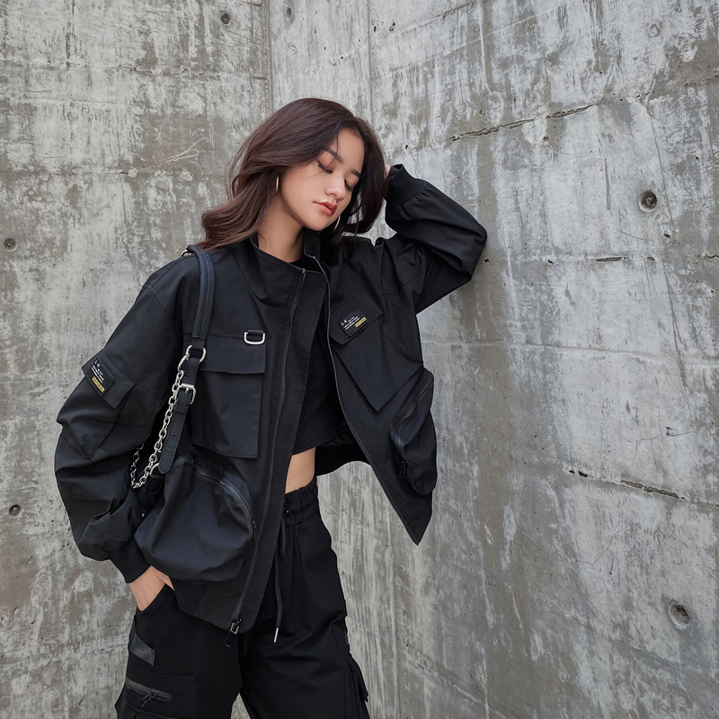 秋冬黑色夹克夹棉上衣新机车骑行服加绒工装外套女春秋款厚棒球服