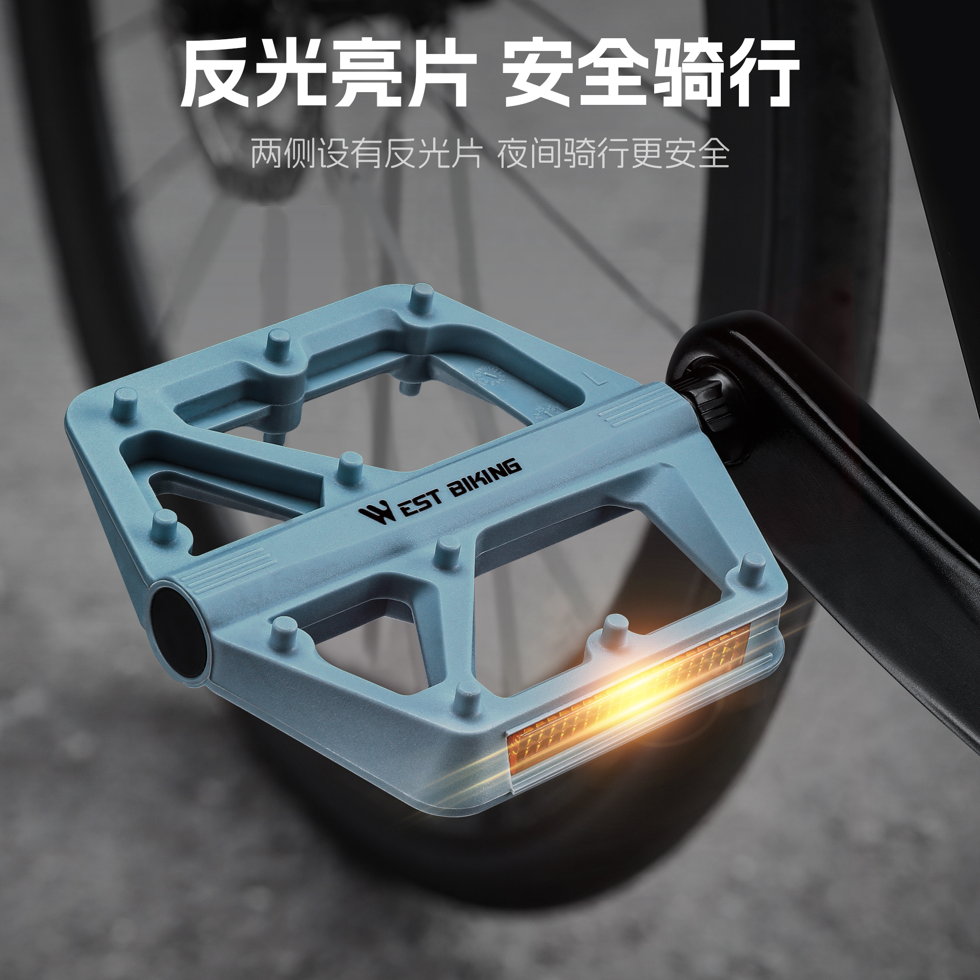 西骑者防滑尼龙脚踏山地公路车双DU轴承反光脚踏板自行车骑行装备