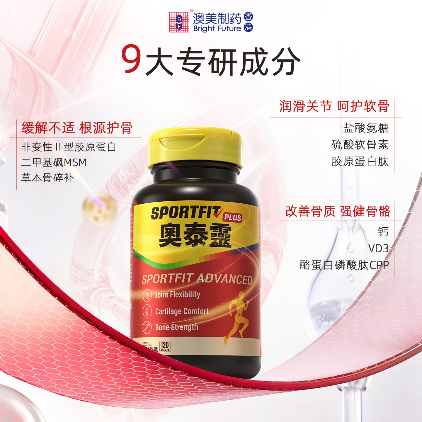 【晁然推荐】香港澳美制药奥泰灵全效大红瓶氨糖软骨素钙片中老年
