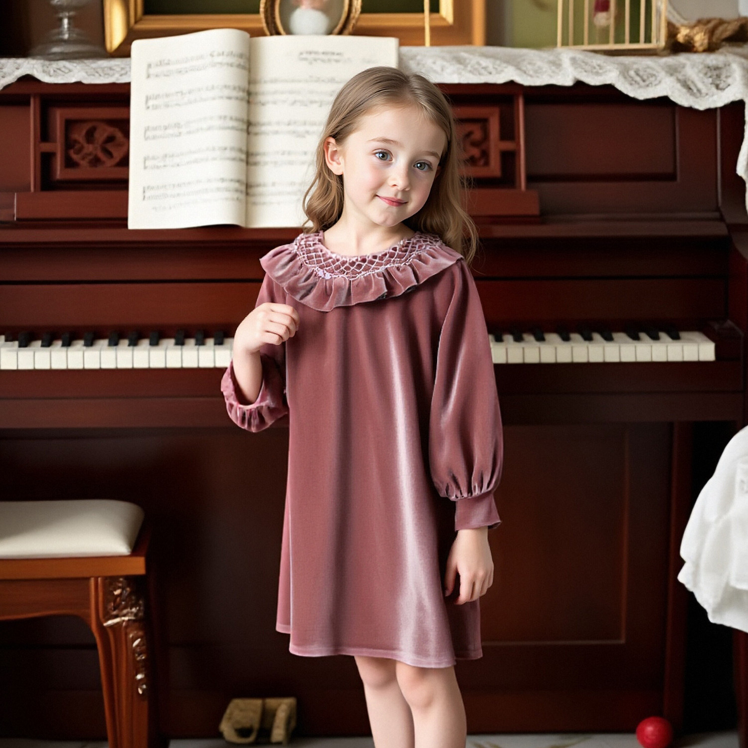 Morning Dance 晨舞女童打揽连衣裙丝绒公主儿童宝宝生日复古秋冬