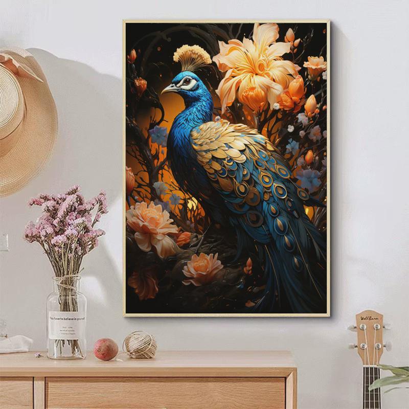 轻奢花开富贵挂画孔雀背景墙装饰画玄关进门壁画客厅沙发牡丹花
