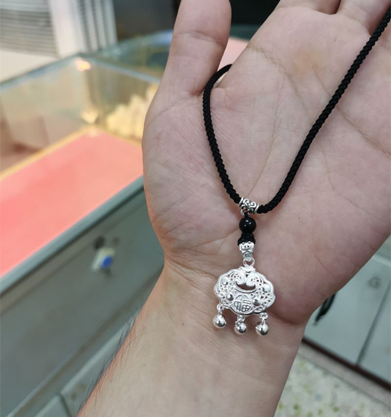 足银999花丝福字平安镂空吊坠福牌锁镂空拉丝花送女朋友闺蜜礼