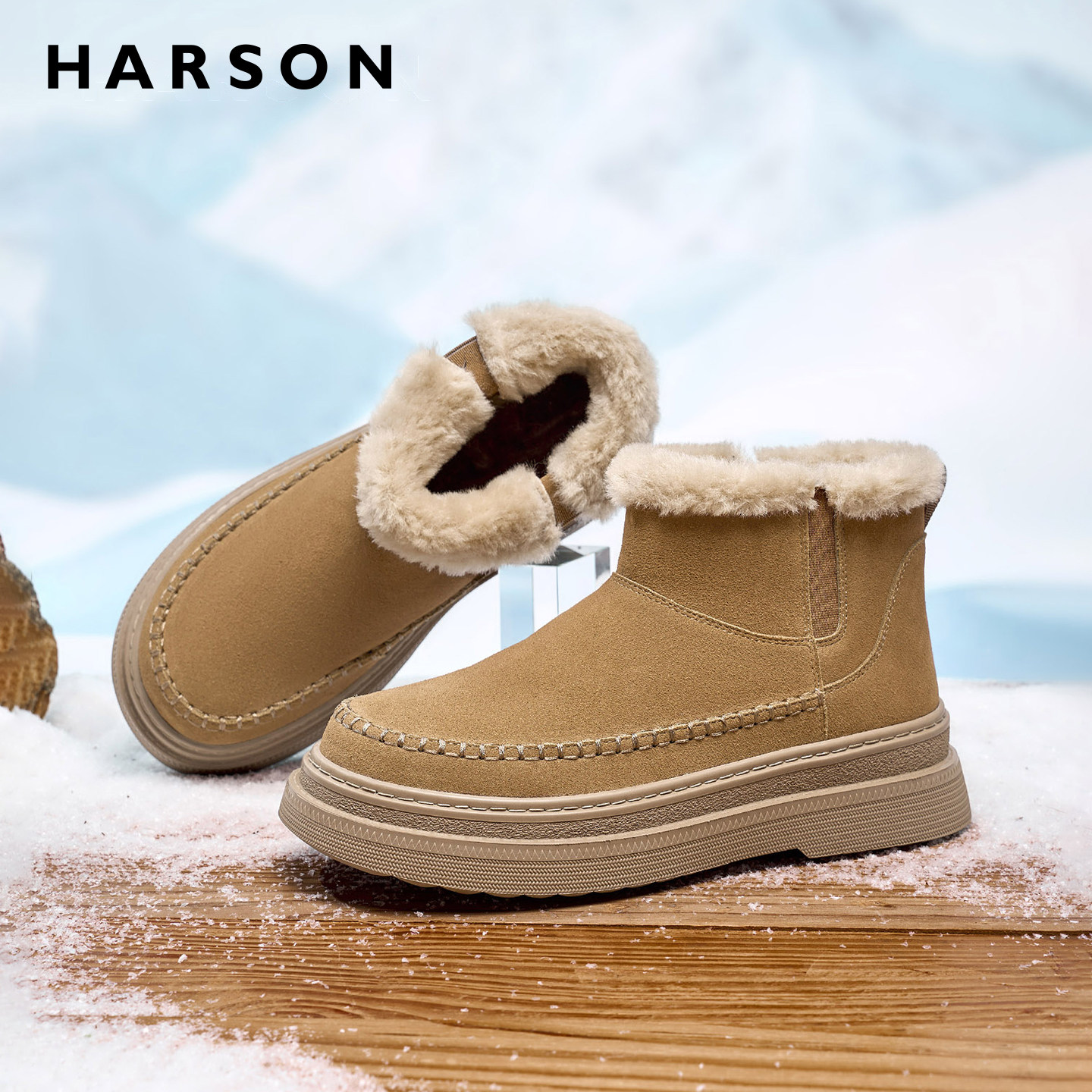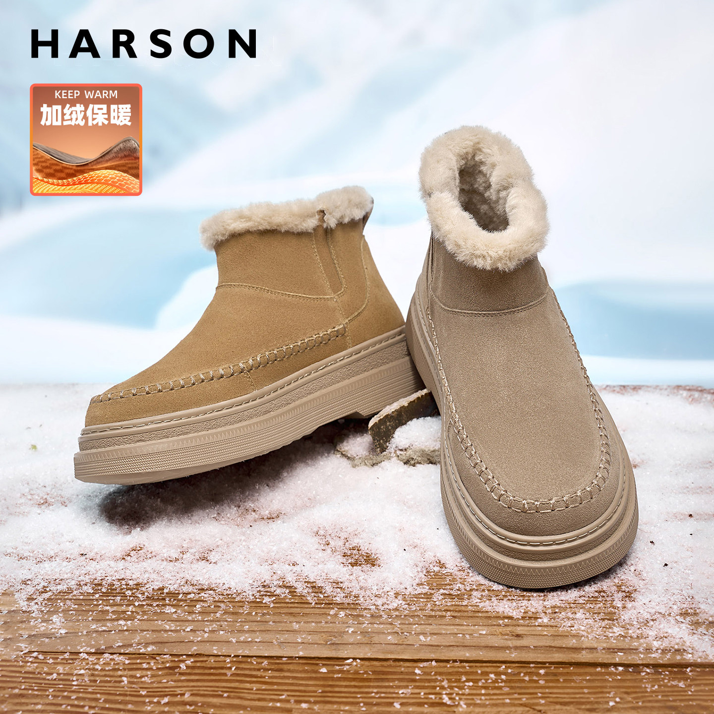 哈森新款男士雪地靴保暖冬季加绒男鞋户外休闲东北棉鞋男靴子防滑