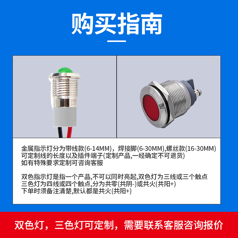 金属指示灯信号灯380v220v24v12v通用小型防水LED电源指示灯