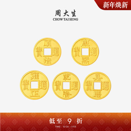 周大生黄金投资金足金五帝通宝金币钱币收藏工艺品生日礼物送女友