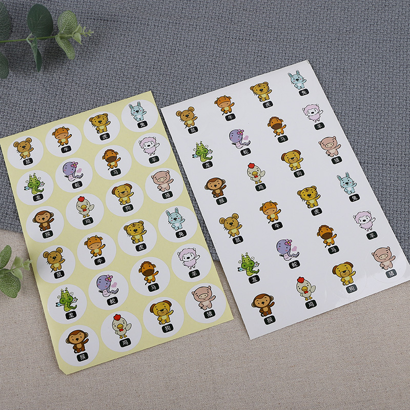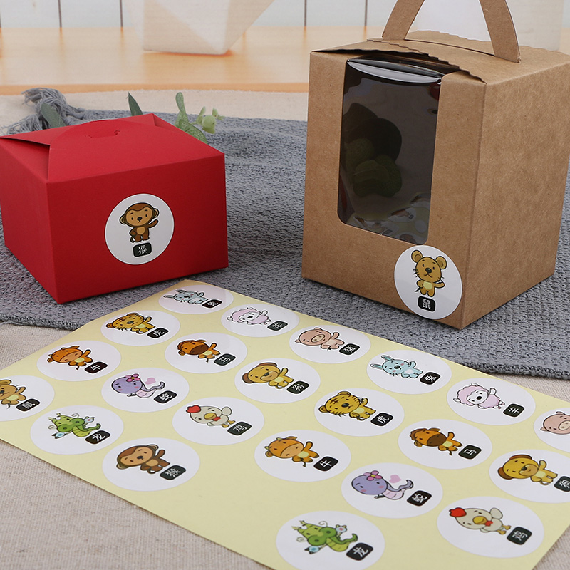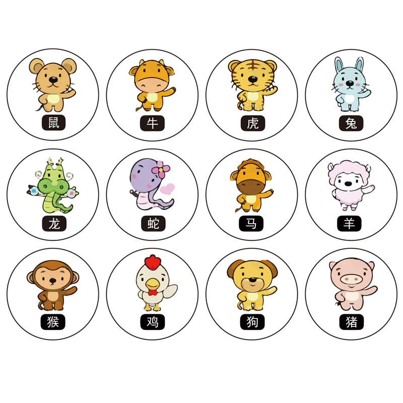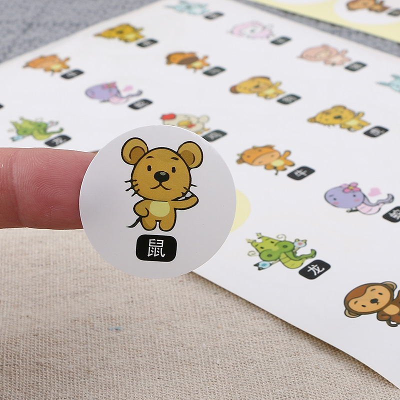 圆形12生肖卡通贴纸十二生肖动物标签纸烘焙蛋糕盒插牌装饰贴新年