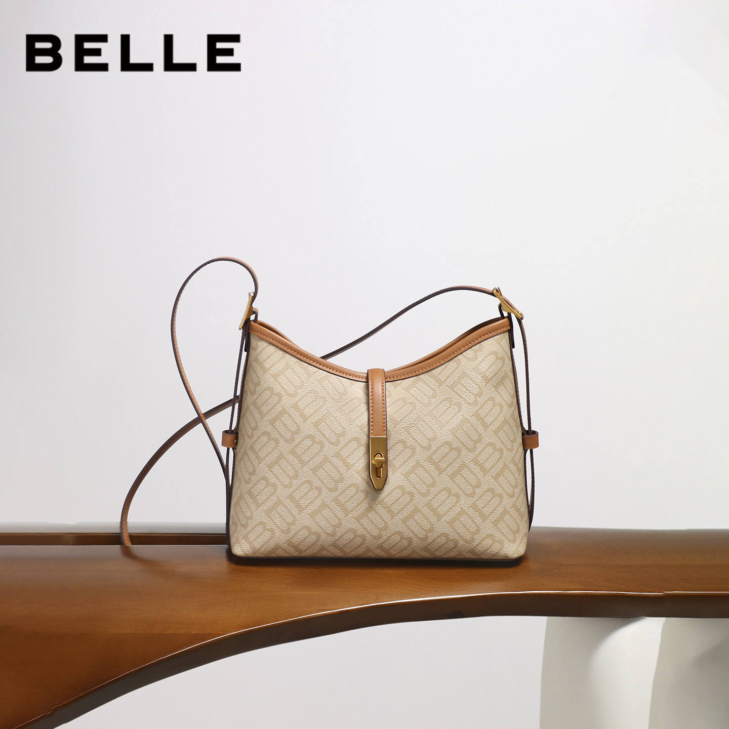 百丽老花通勤大容量腋下包