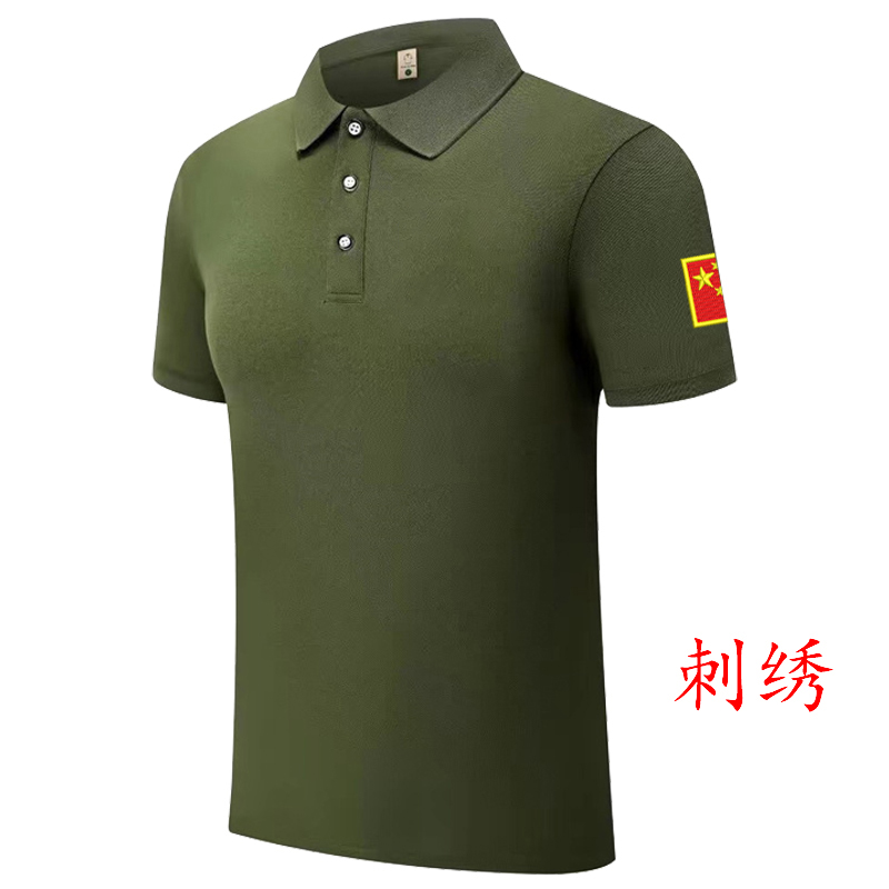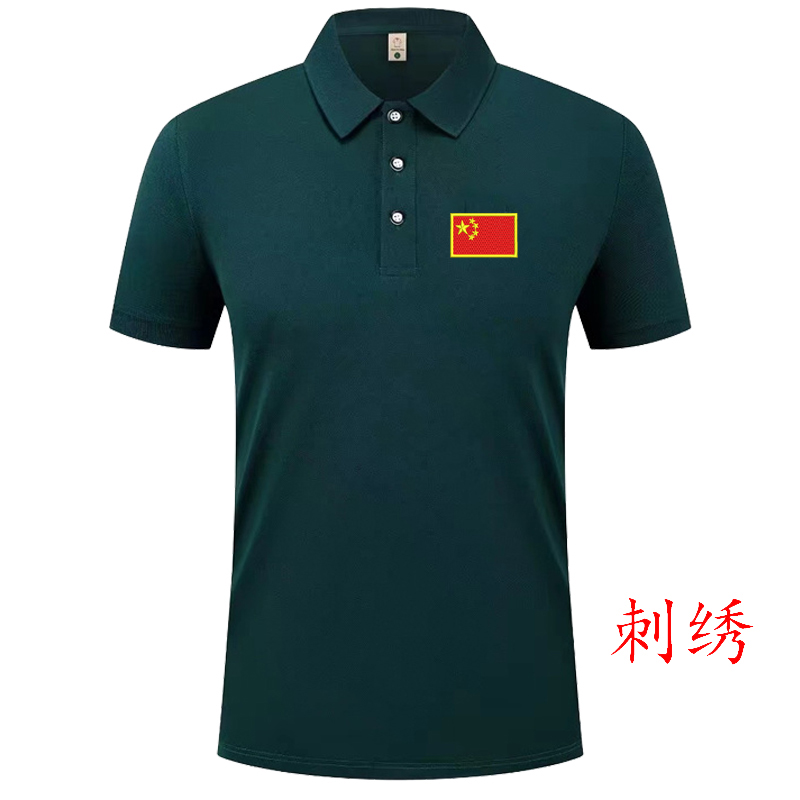 刺绣图案CHINA中国国旗t恤纪念衫翻领Polo冰丝军绿色短袖男军迷T