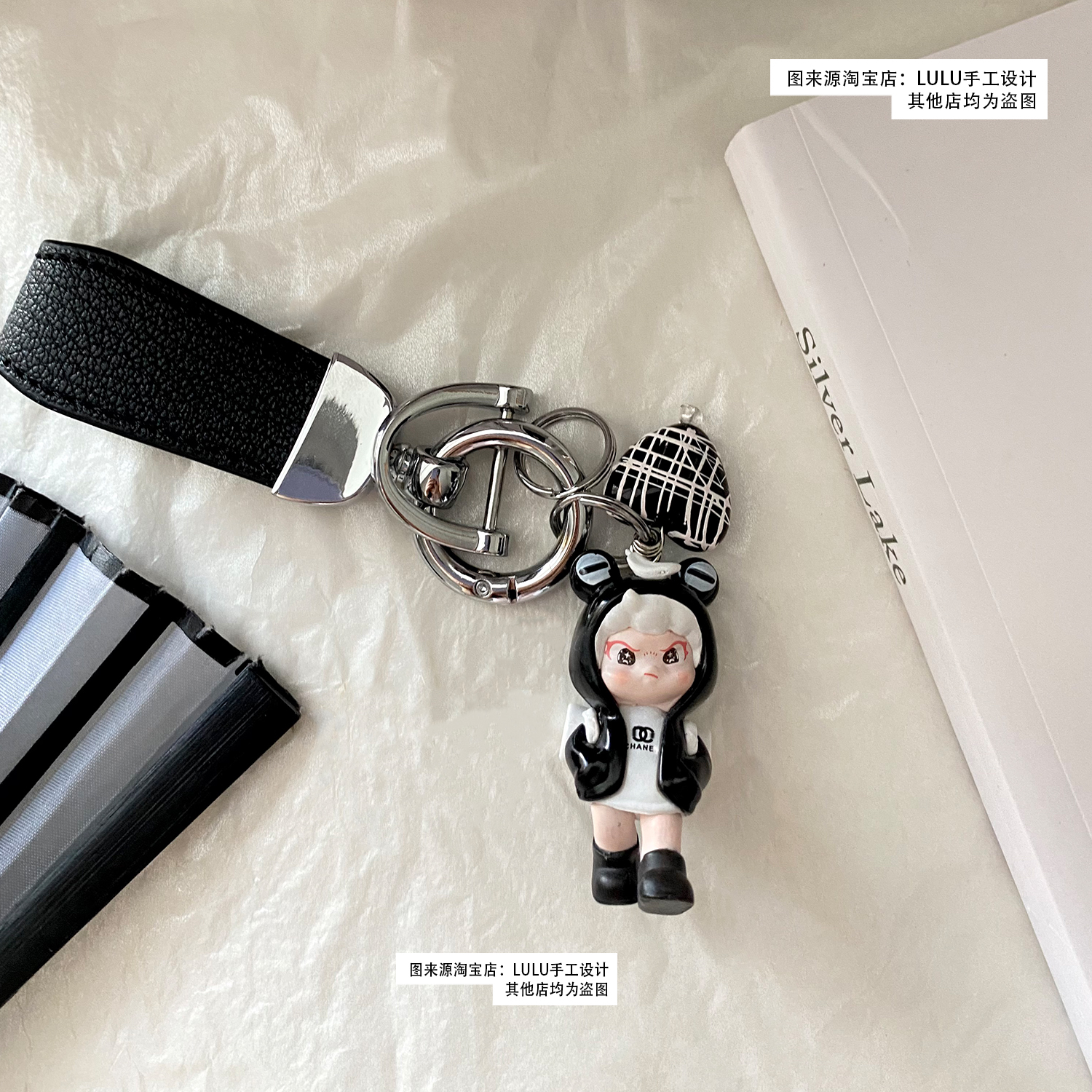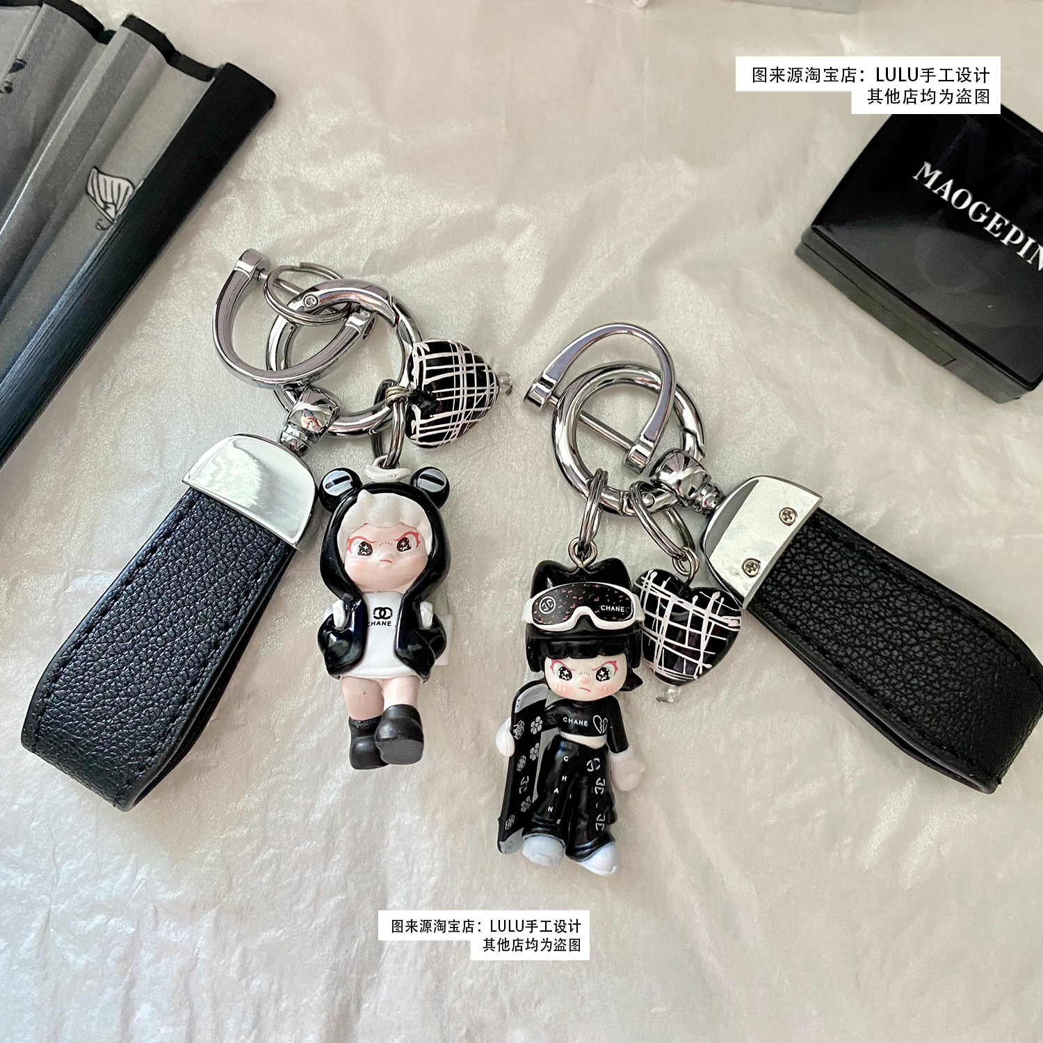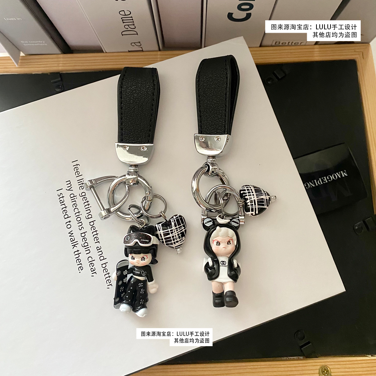 Dora大表姐小香滑板迷你女孩汽车钥匙扣黑白小羊皮男女款环圈挂件