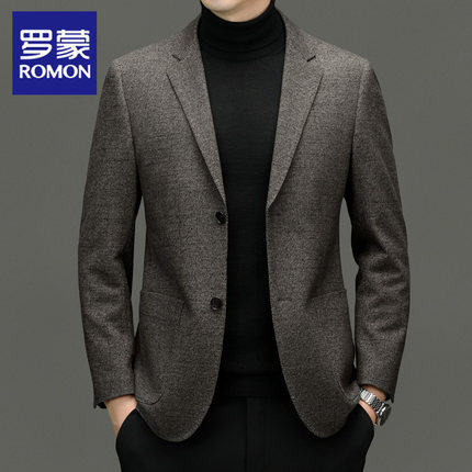罗蒙休闲西服男高级感2024春秋季新款商务格子单西小西装外套男士