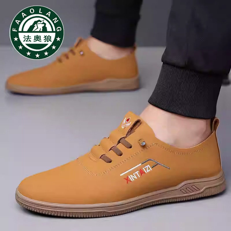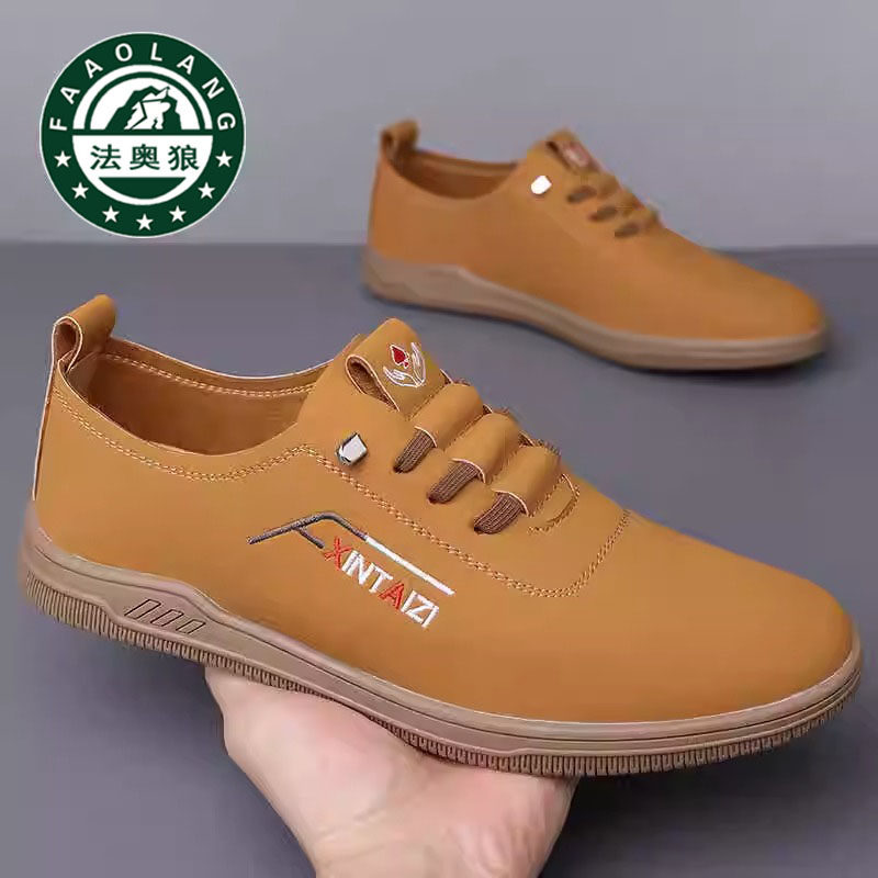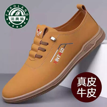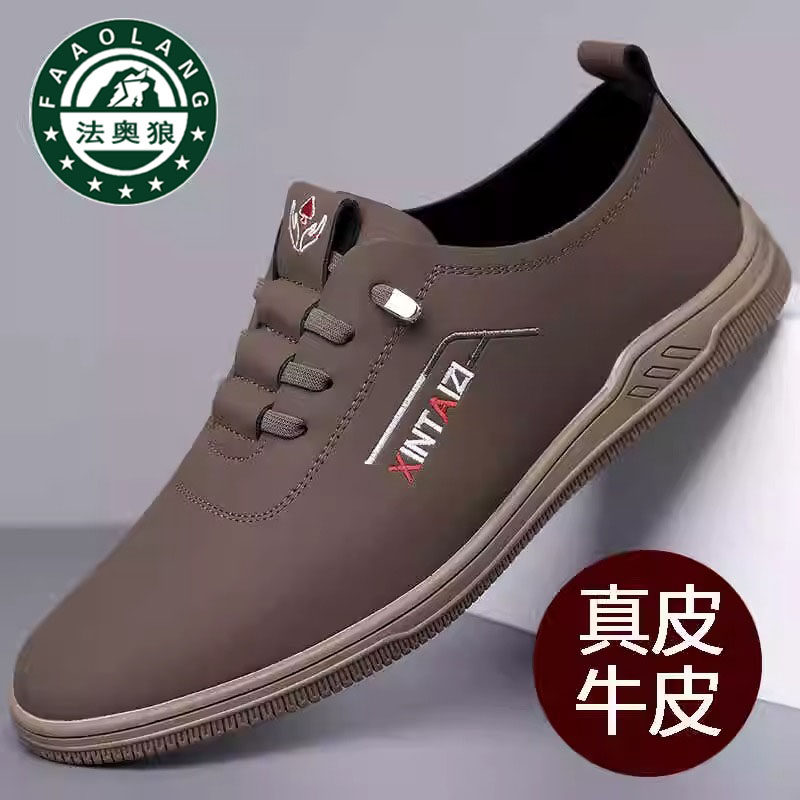 100%全牛皮正品法奥狼男鞋2025男士真皮运动休闲厚底软底驾车鞋男